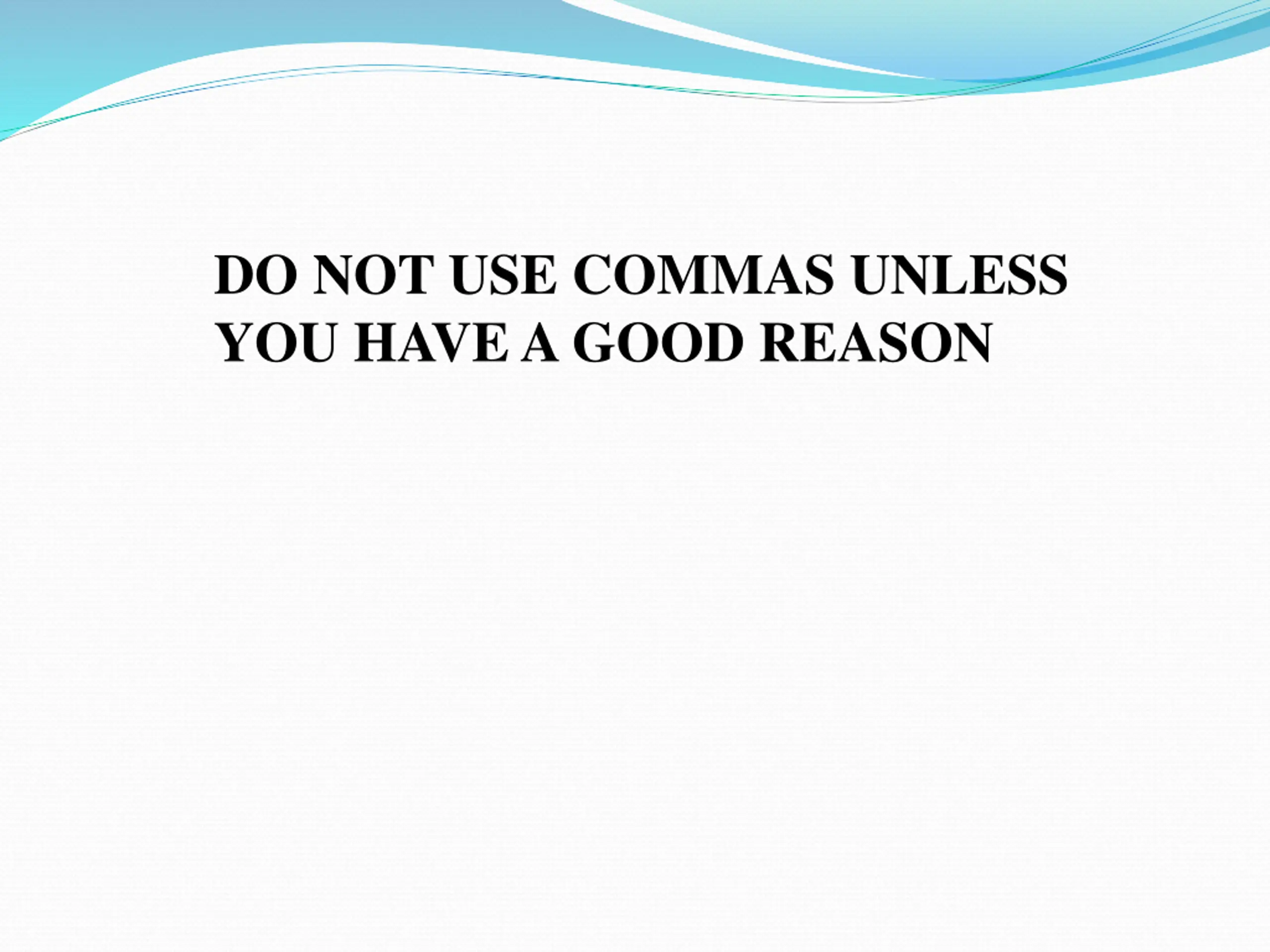 DO NOT USE COMMAS UNLESS YOU HAVE A GOOD REASON