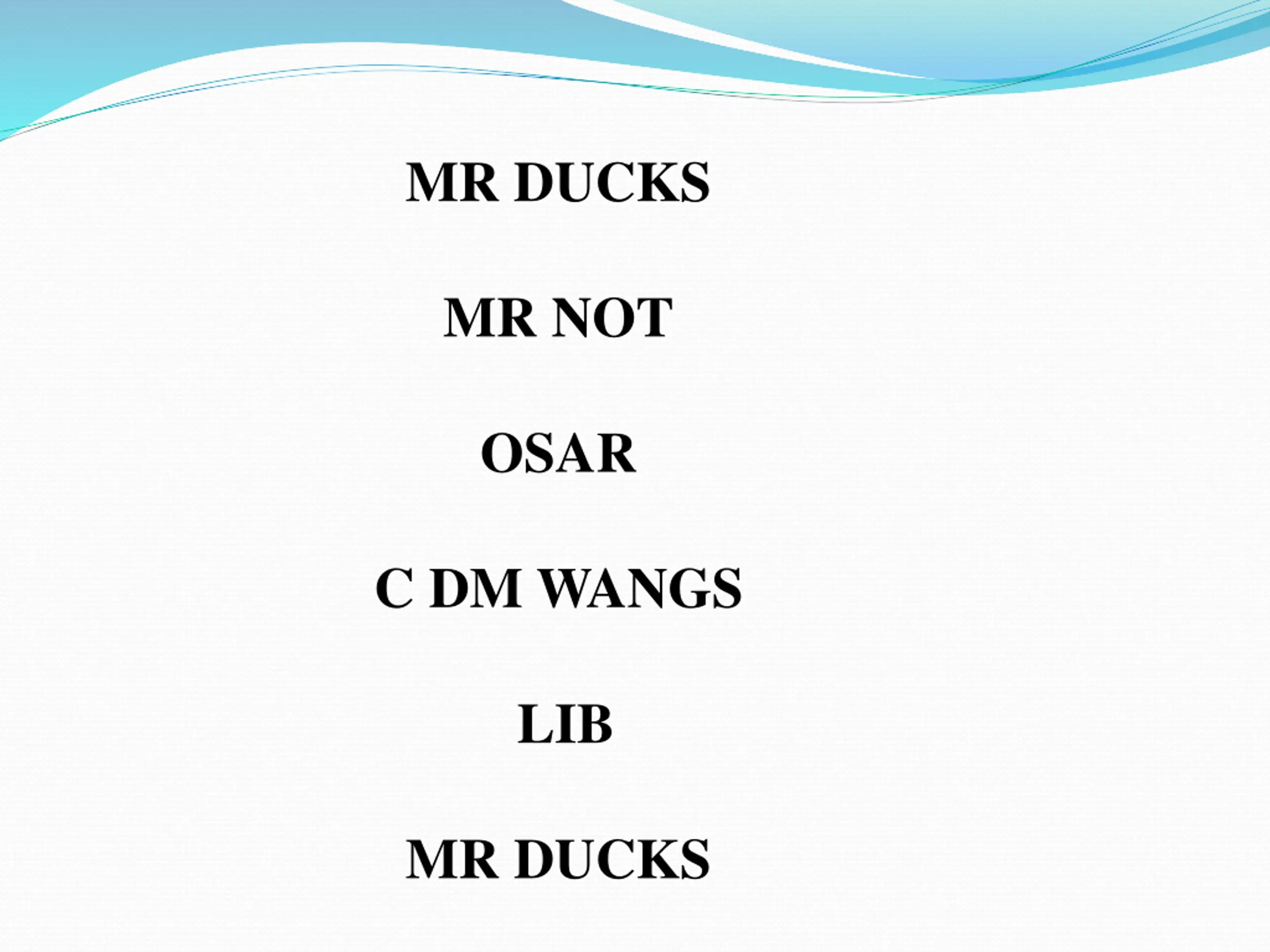 MR DUCKS MR NOT OSAR C DM WANGS LIB MR DUCKS