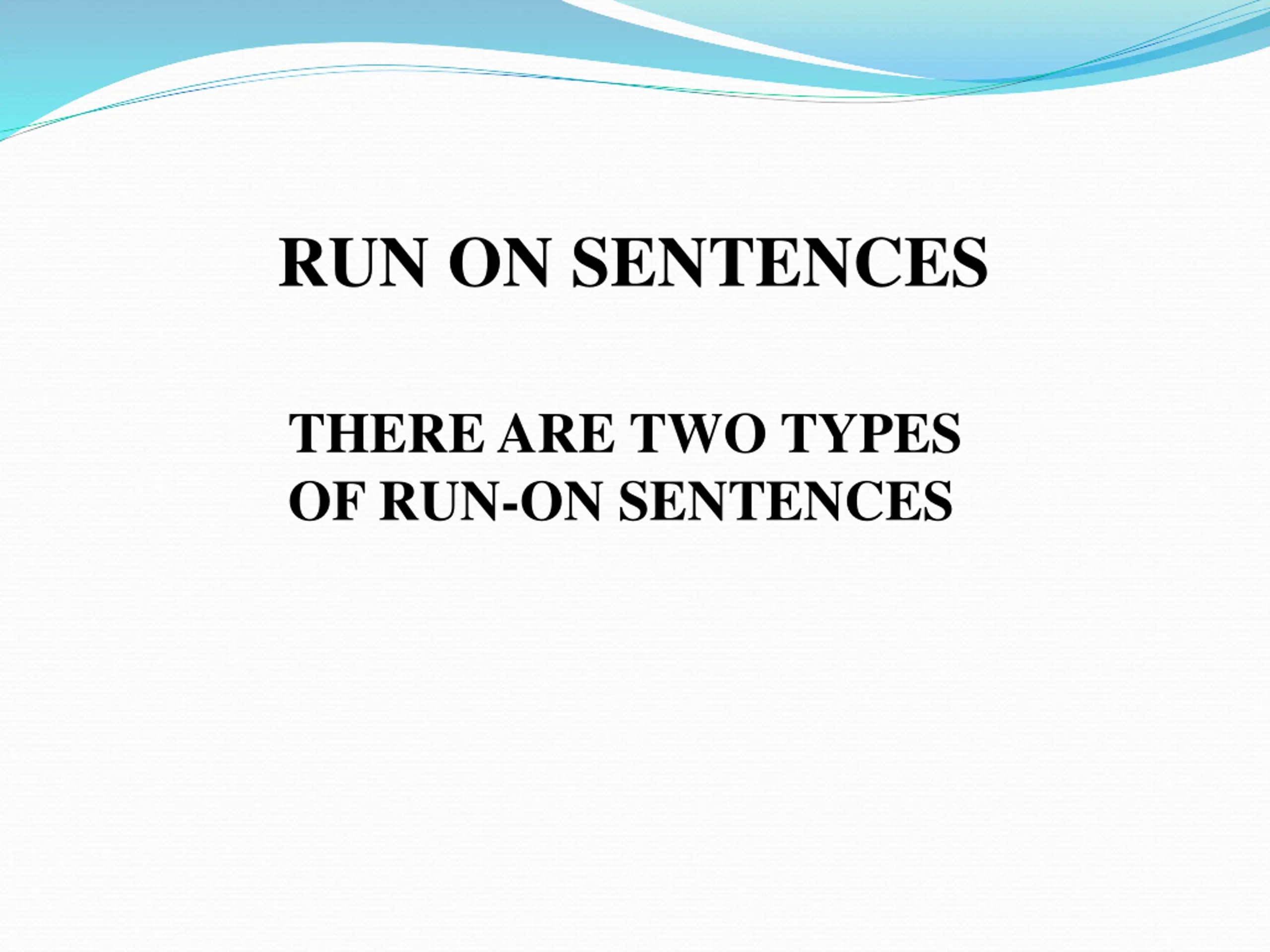 RUN ON SENTENCES THERE ARE TWO TYPES OF RUN-ON SENTENCES