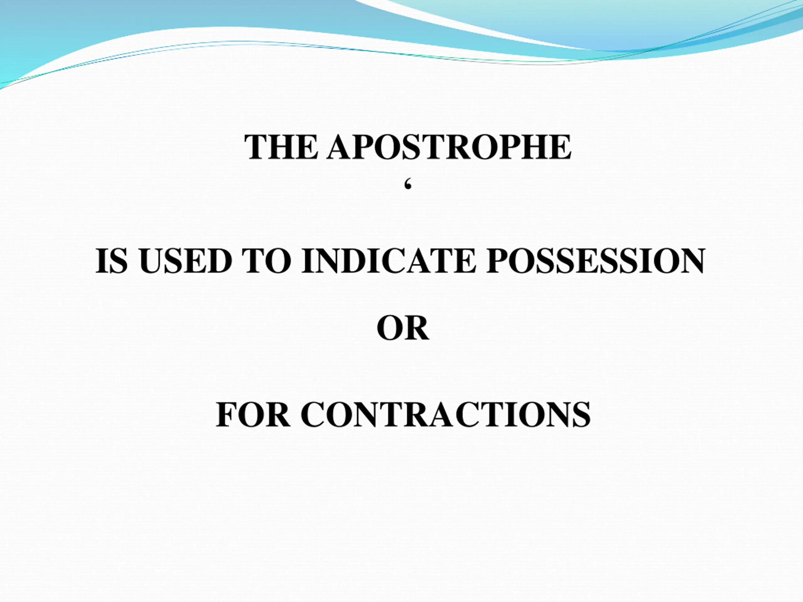 THE APOSTROPHE IS USED TO INDICATE POSSESSION OR FOR CONTRACTIONS