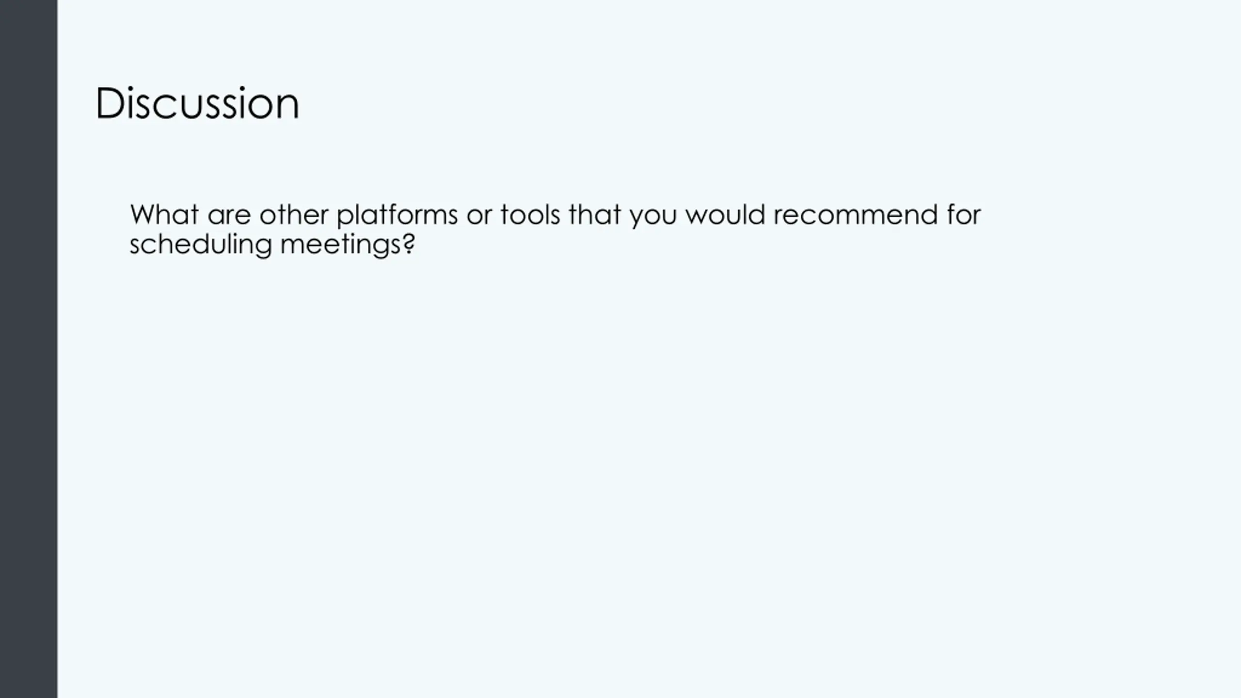 Discussion What are other platforms or tools that you would recommend for scheduling meetings?
