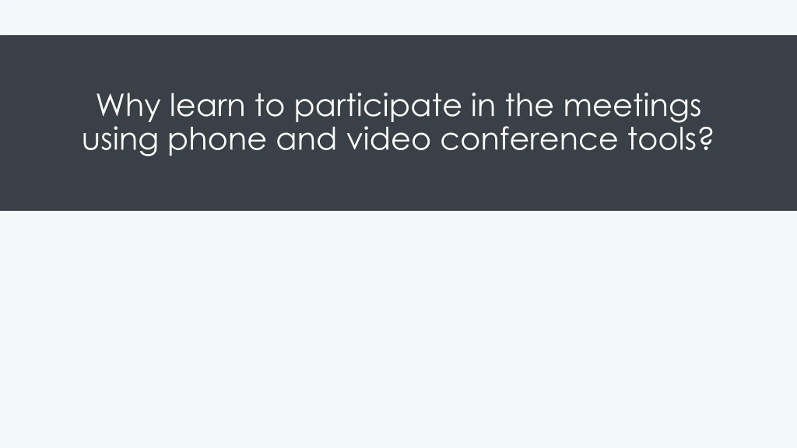 Why learn to participate in the meetings using phone and video conference tools?