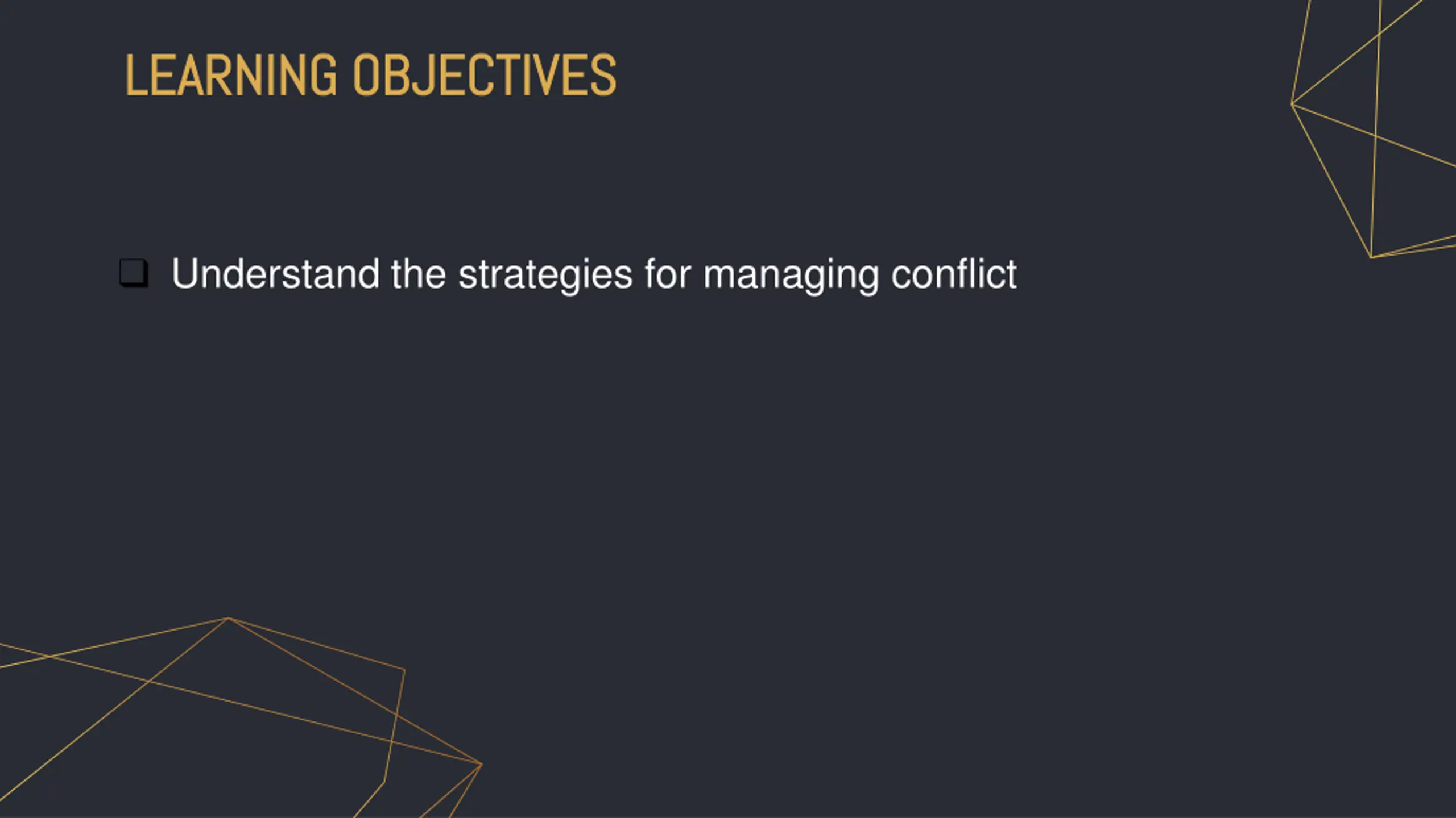 LEARNING OBJECTIVES LEARNING OBJECTIVES Understand the strategies for managing conflict