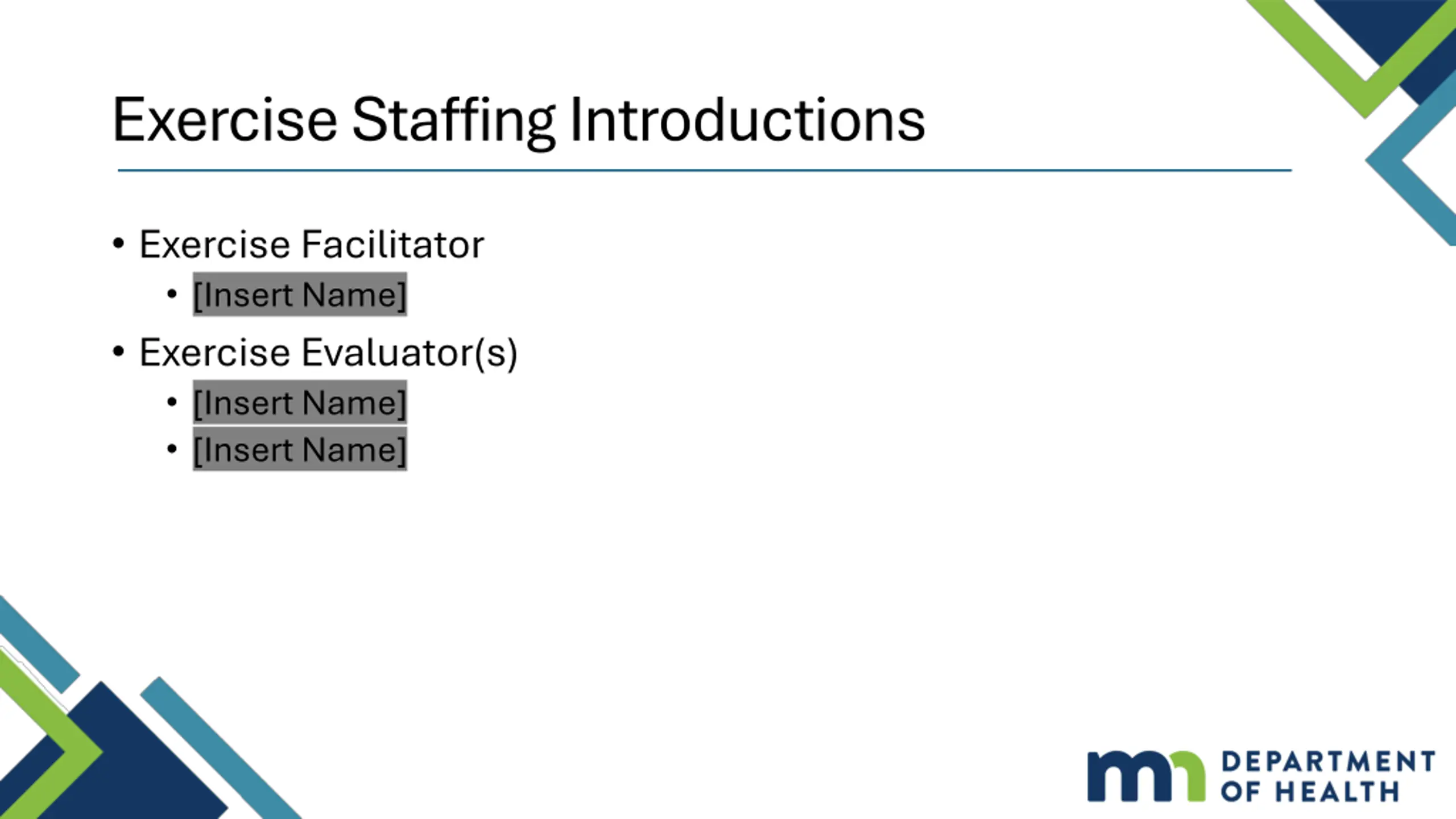 Exercise Staffing Introductions Exercise Facilitator [Insert Name] Exercise Evaluator(s) [Insert Name] [Insert Name]