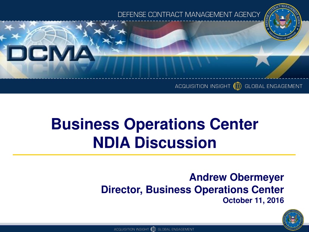 Business Operations Center NDIA Discussion Andrew Obermeyer Director, Business Operations Center October 11, 2016