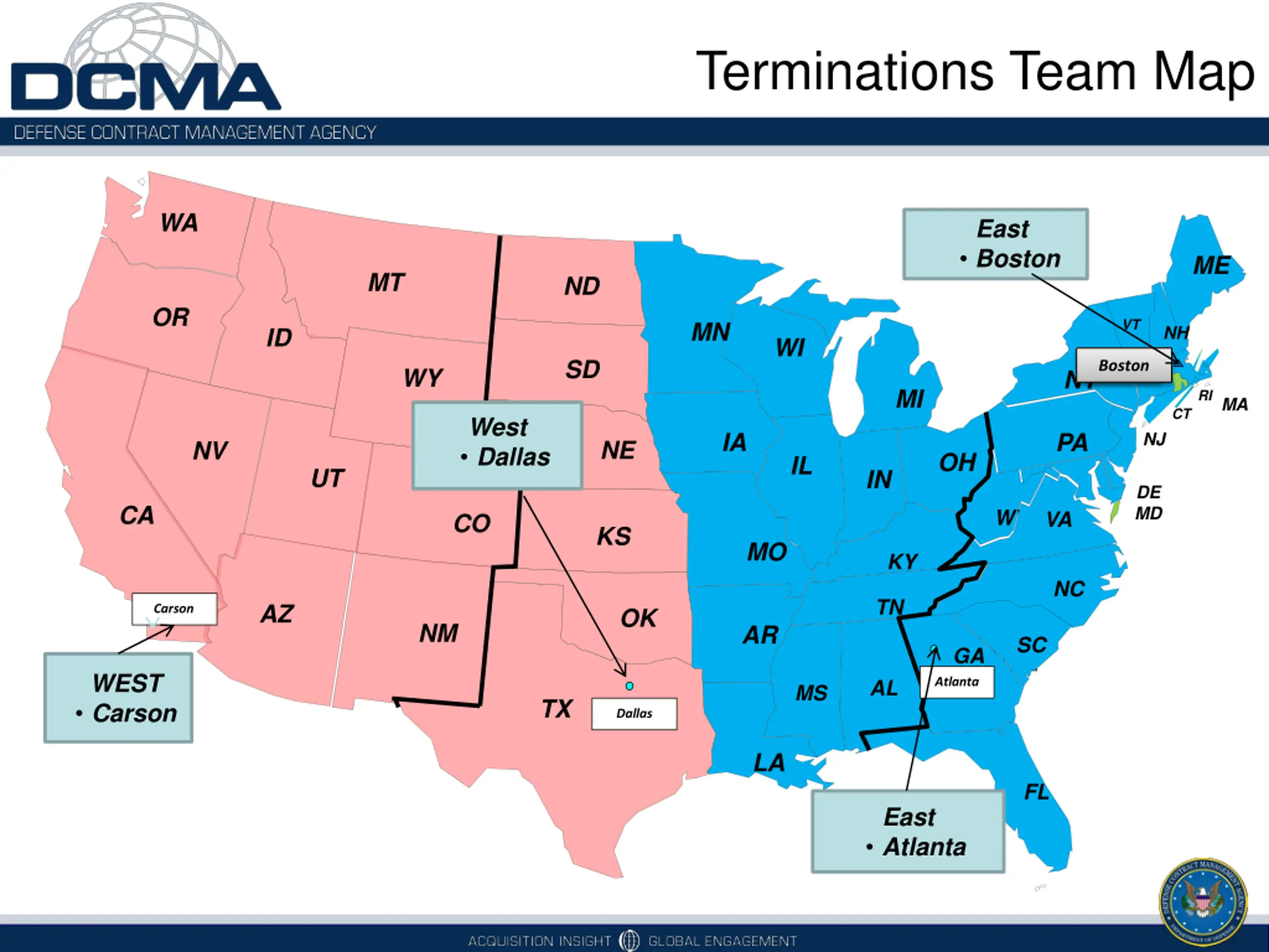 Terminations Team Map WA East Boston ME MT ND OR VT MN NH ID Boston WI SD Boston WY NY MI RI MA CT West IA PA NJ NE Dallas NV OH IL UT IN DE MD CA WV VA CO KS MO KY AZ NC TN Carson OK NM AR SC DCMA Atlanta (Smyrna, GA) GA WEST Carson AL Atlanta MS TX Dallas LA FL East Atlanta