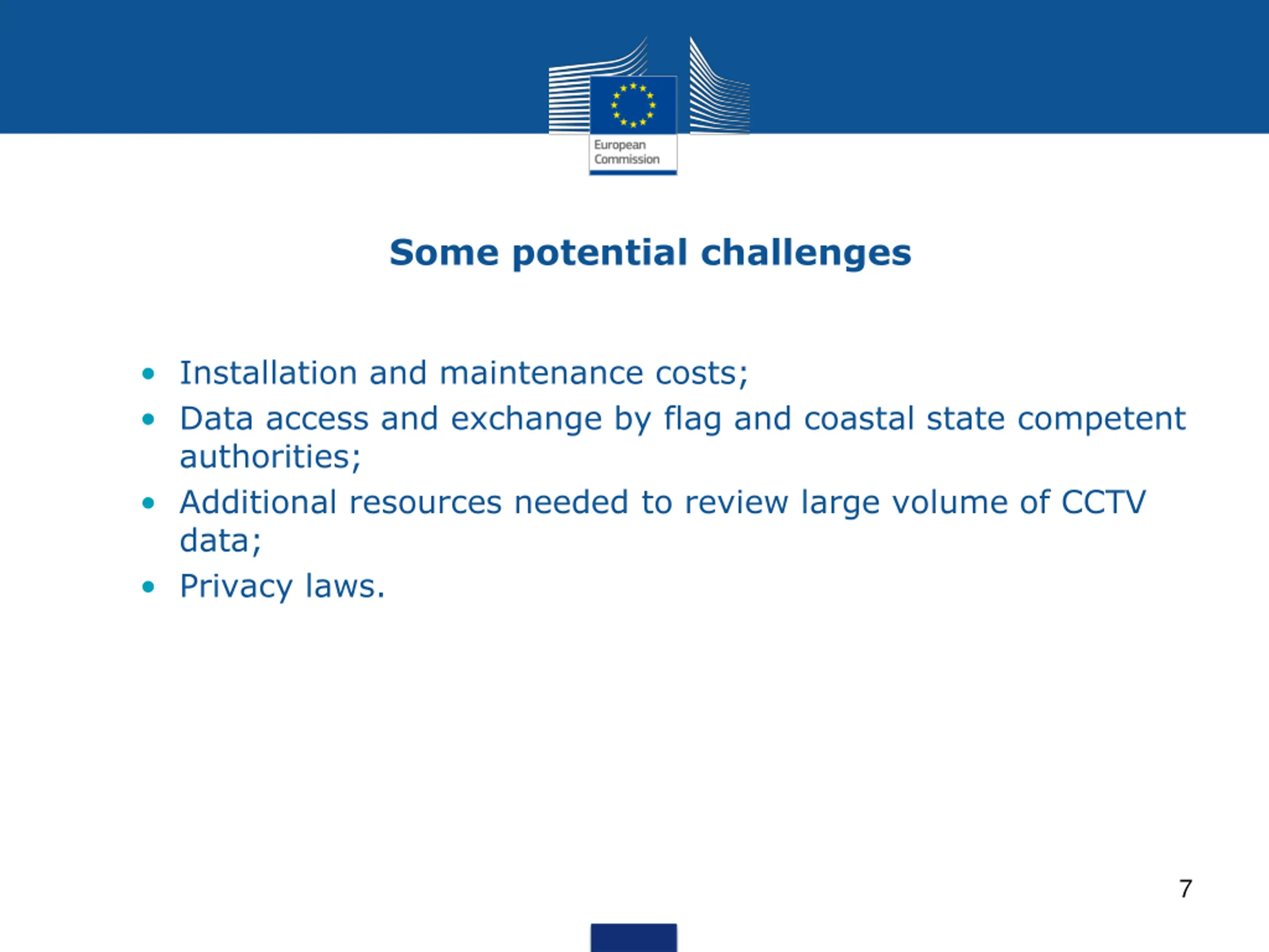 Some potential challenges Installation and maintenance costs; Data access and exchange by flag and coastal state competent authorities; Additional resources needed to review large volume of CCTV data; Privacy laws. 7