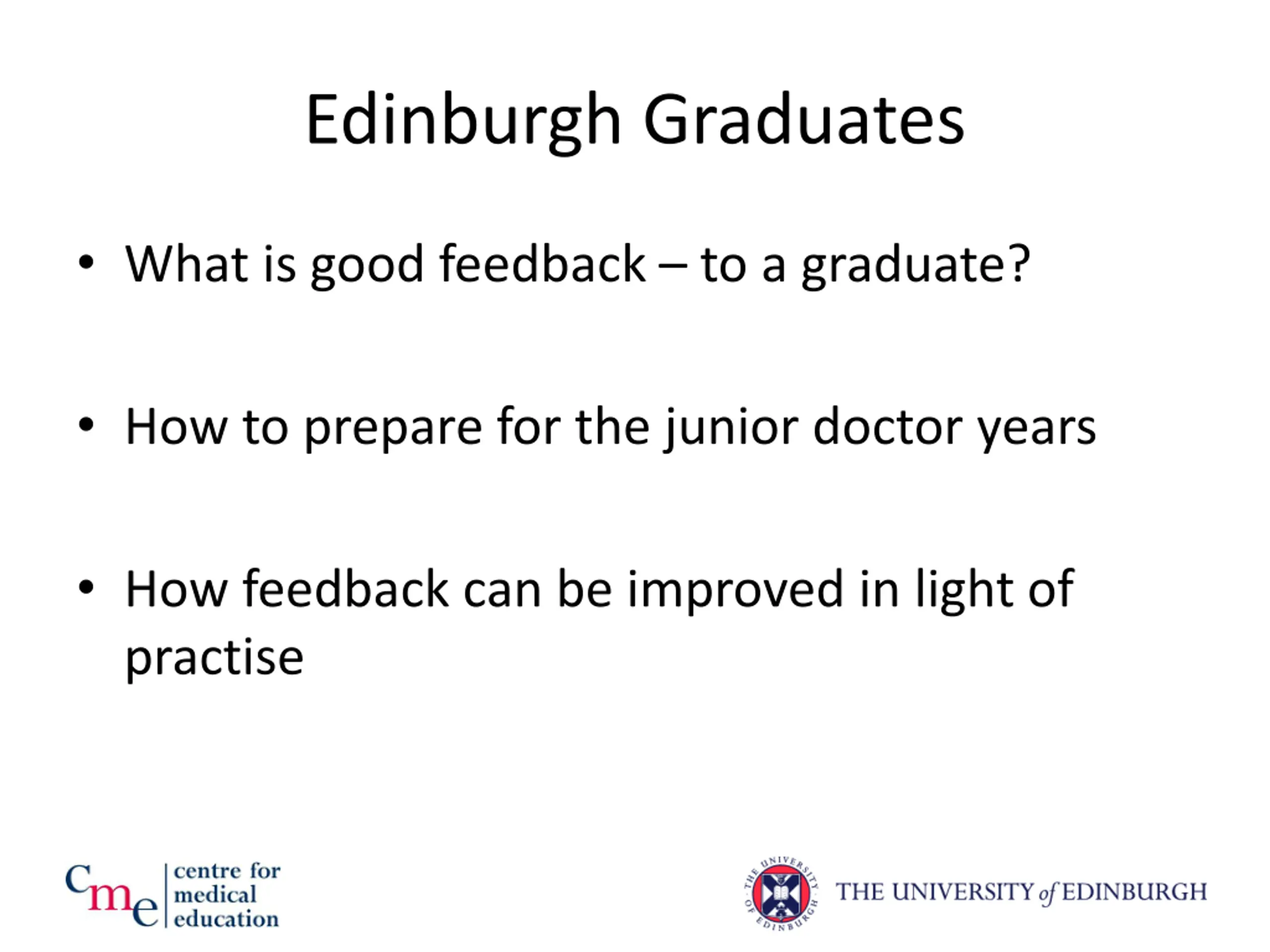 Edinburgh Graduates What is good feedback to a graduate? How to prepare for the junior doctor years How feedback can be improved in light of practise