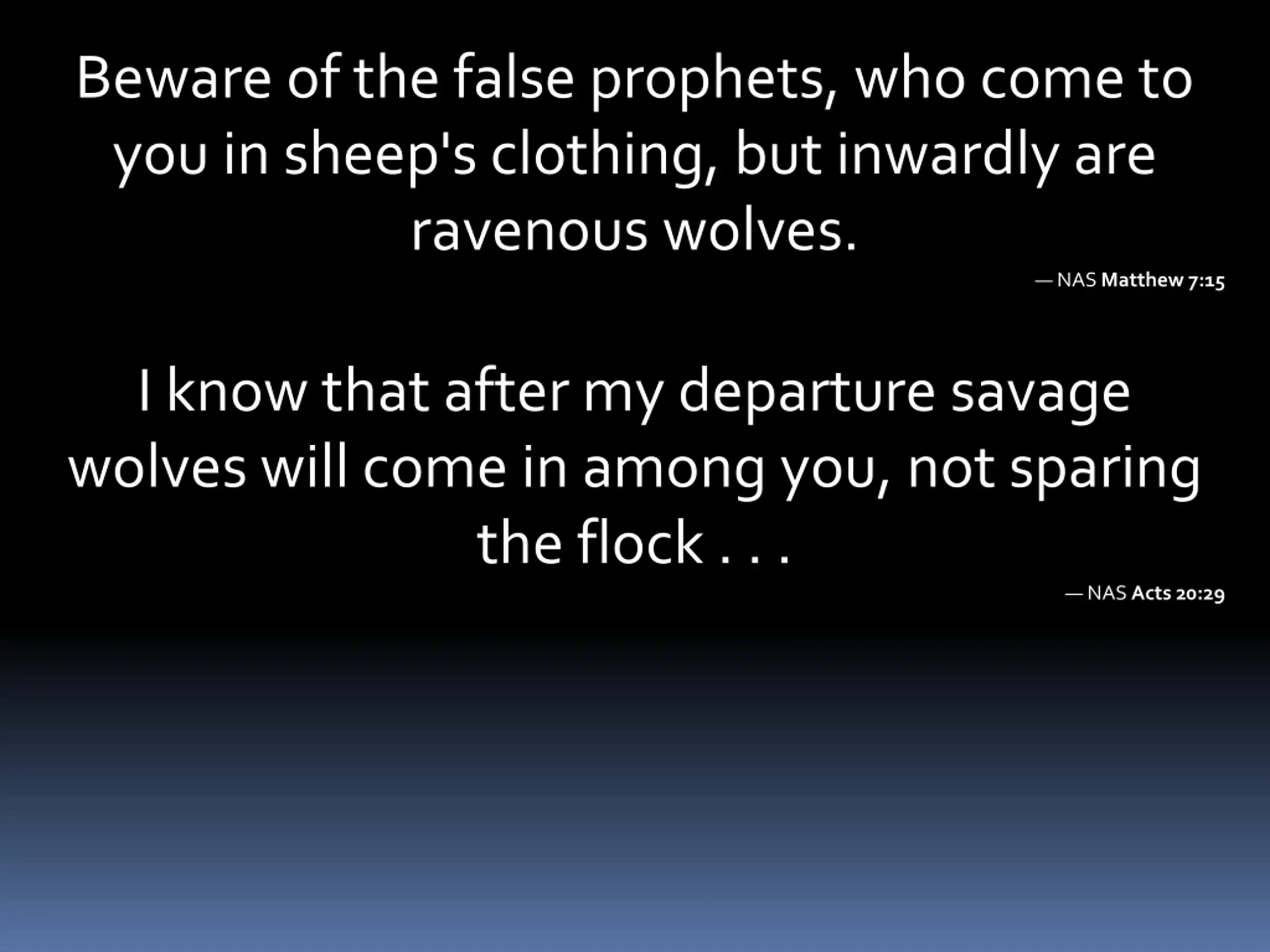 Beware of the false prophets, who come to you in sheep's clothing, but inwardly are ravenous wolves. NAS Matthew 7:15 I know that after my departure savage wolves will come in among you, not sparing the flock . . . NAS Acts 20:29