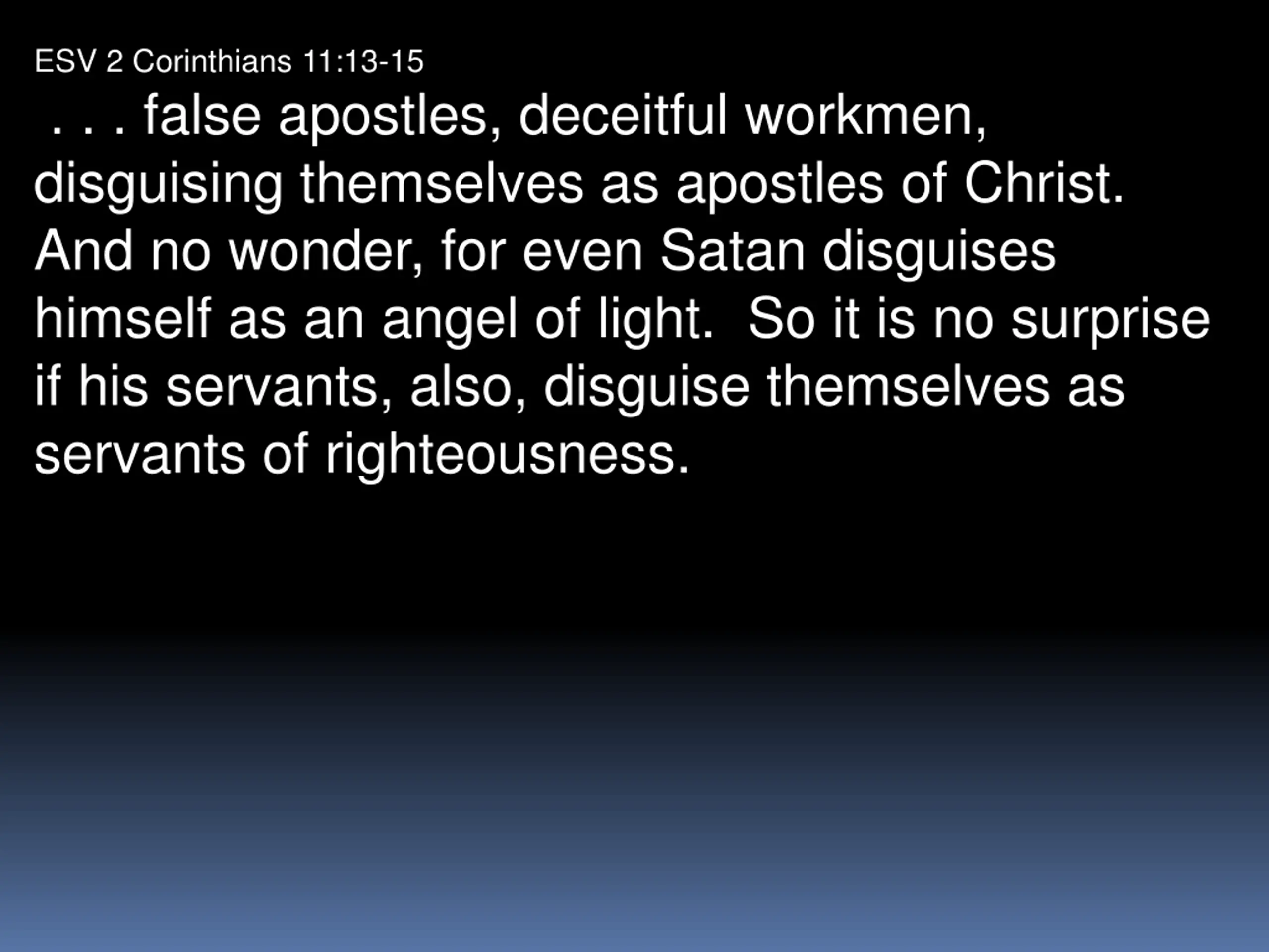 ESV 2 Corinthians 11:13-15 . . . false apostles, deceitful workmen, disguising themselves as apostles of Christ. And no wonder, for even Satan disguises himself as an angel of light. So it is no surprise if his servants, also, disguise themselves as servants of righteousness.