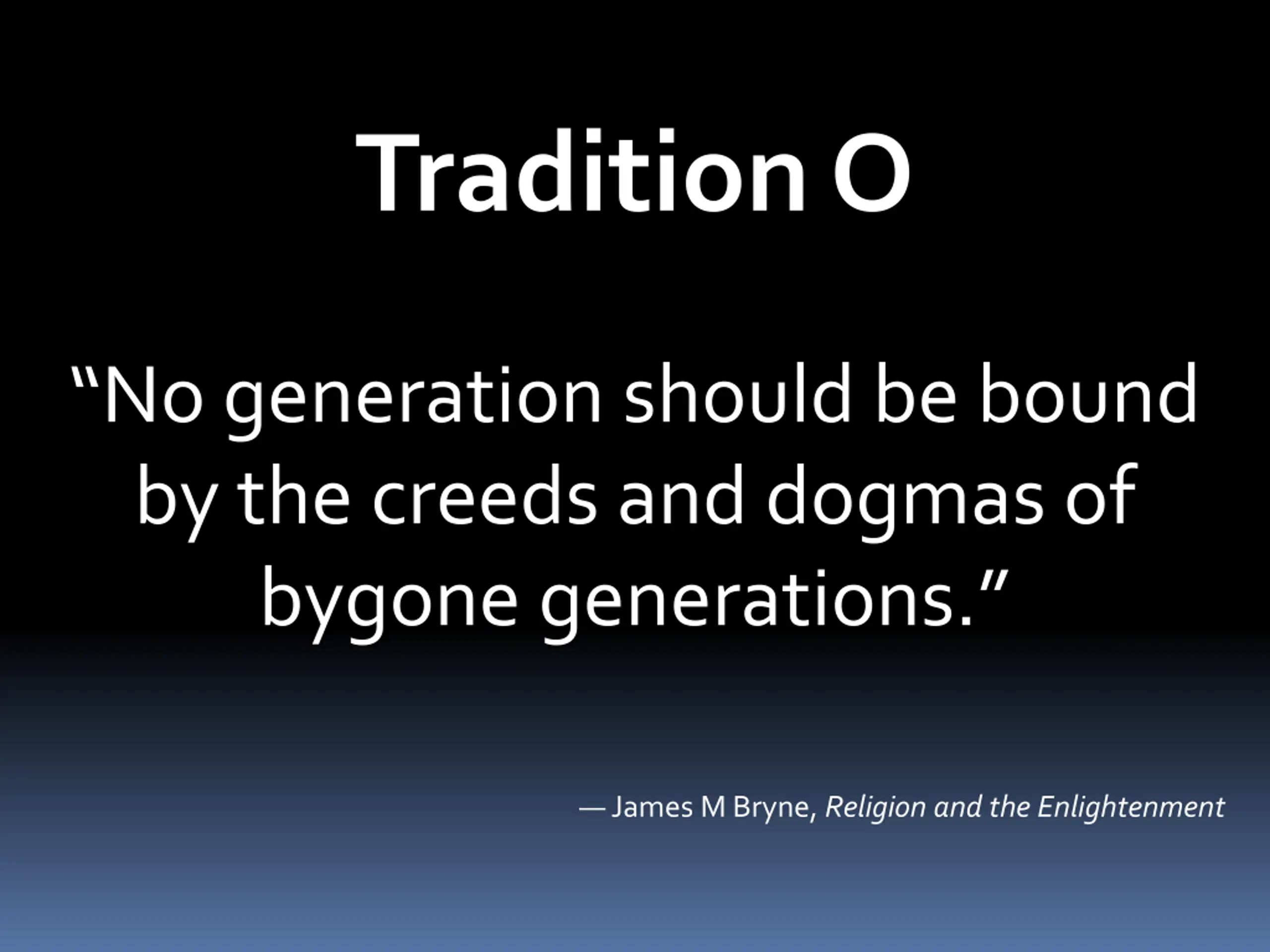 Tradition O No generation should be bound by the creeds and dogmas of bygone generations. James M Bryne, Religion and the Enlightenment