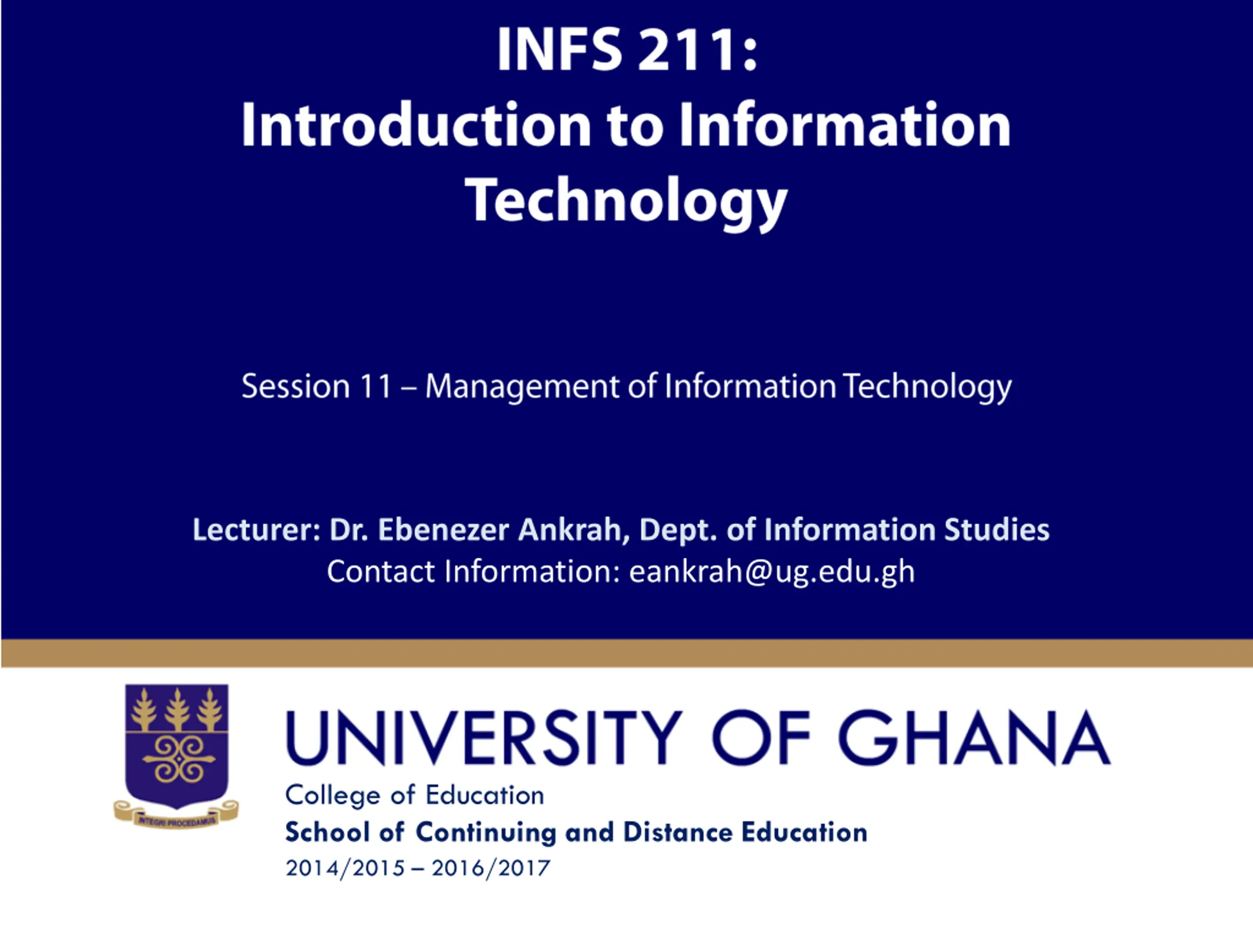 Lecturer: Dr. Ebenezer Ankrah, Dept. of Information Studies Contact Information: eankrah@ug.edu.gh College of Education School of Continuing and Distance Education 2014/2015 2016/2017