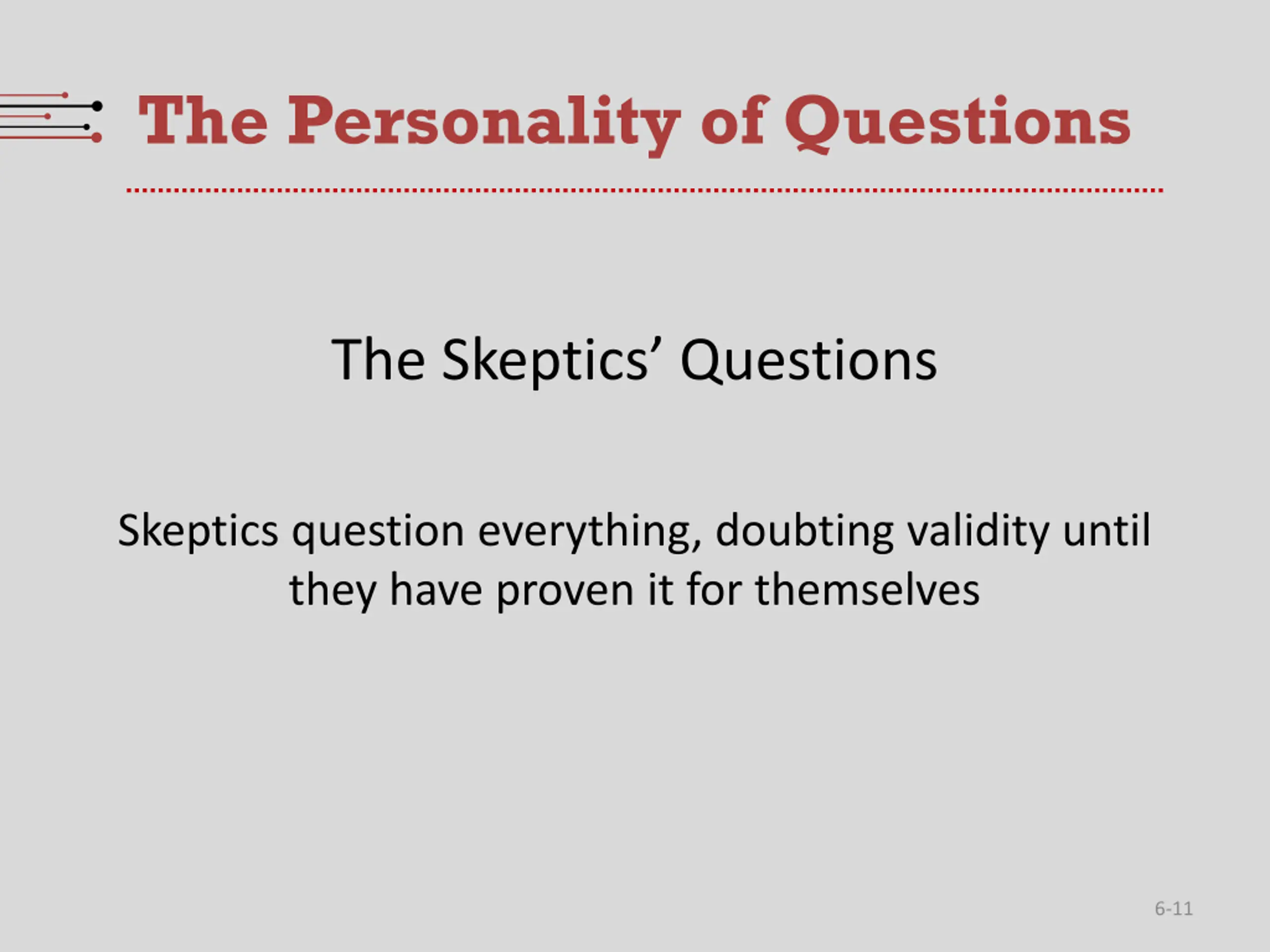 The Personality of Questions The Skeptics Questions Skeptics question everything, doubting validity until they have proven it for themselves 6-11