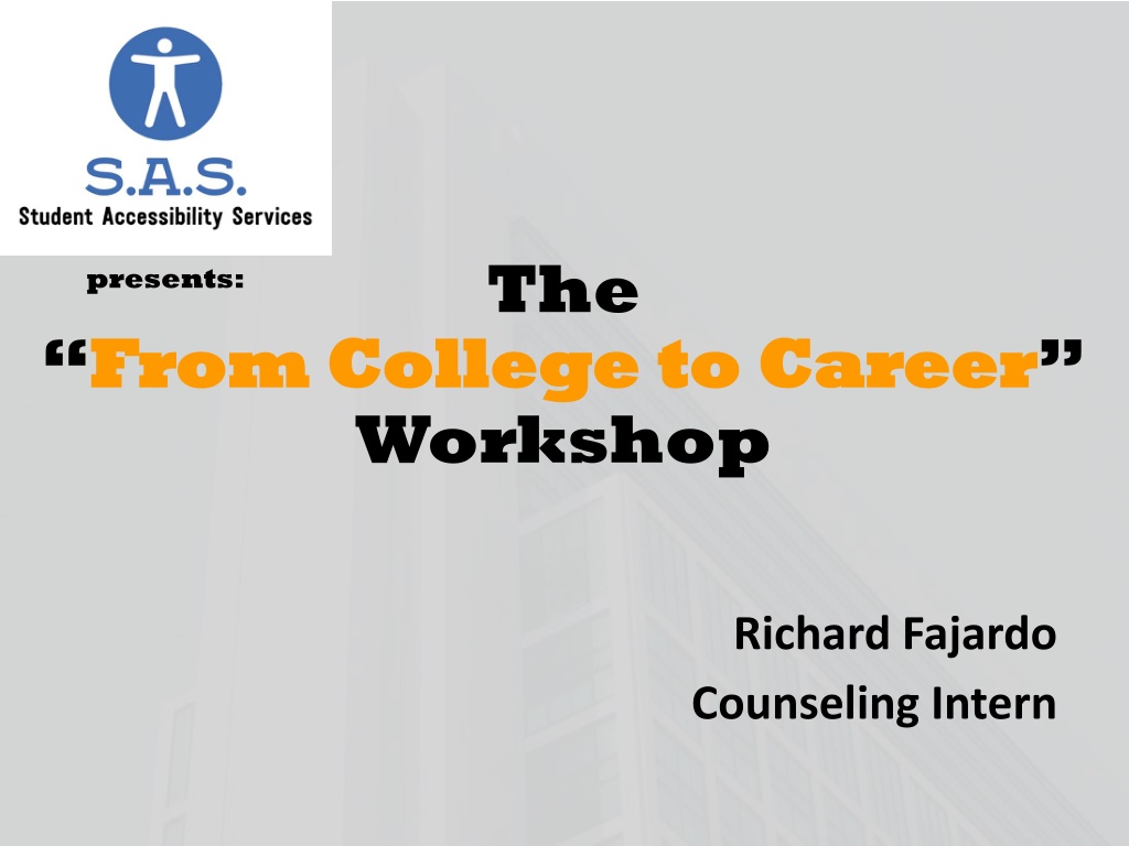 The presents: From College to Career From College to Career Workshop Richard Fajardo Counseling Intern