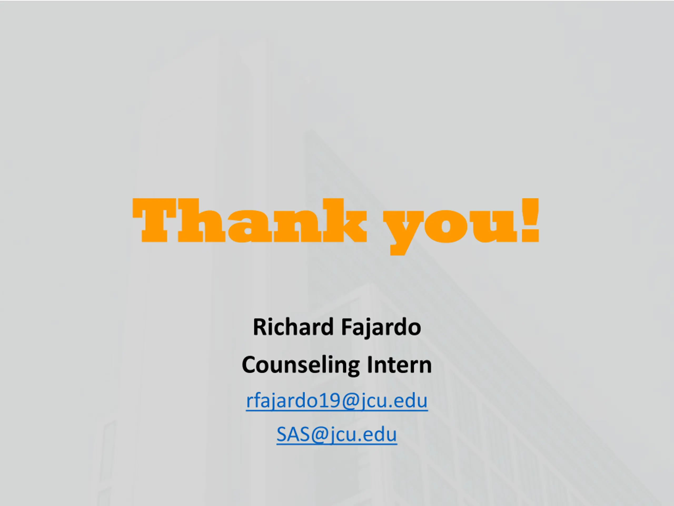 Thank you! Thank you! Richard Fajardo Counseling Intern rfajardo19@jcu.edu SAS@jcu.edu
