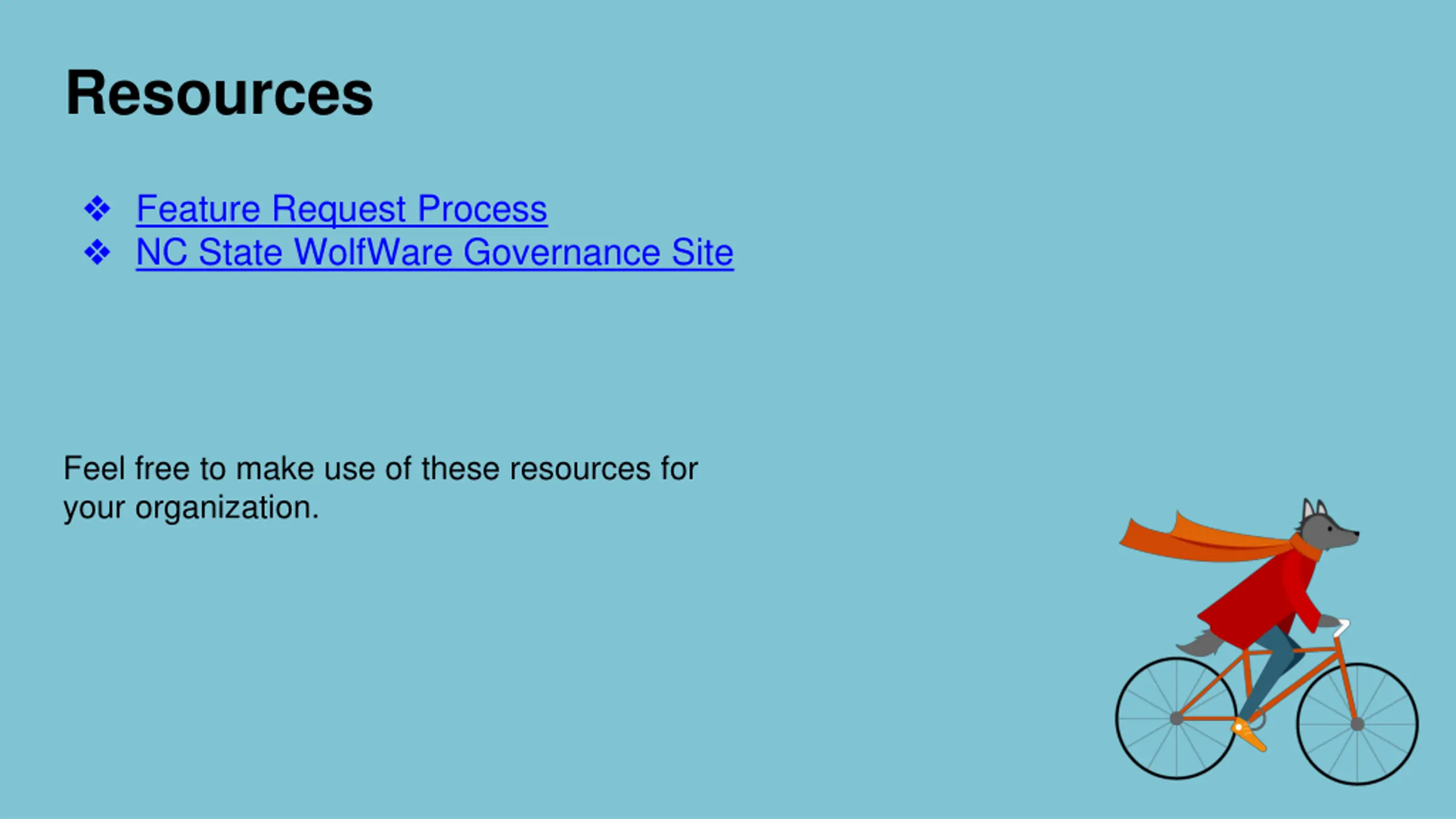 Resources Feature Request Process NC State WolfWare Governance Site Feel free to make use of these resources for your organization.