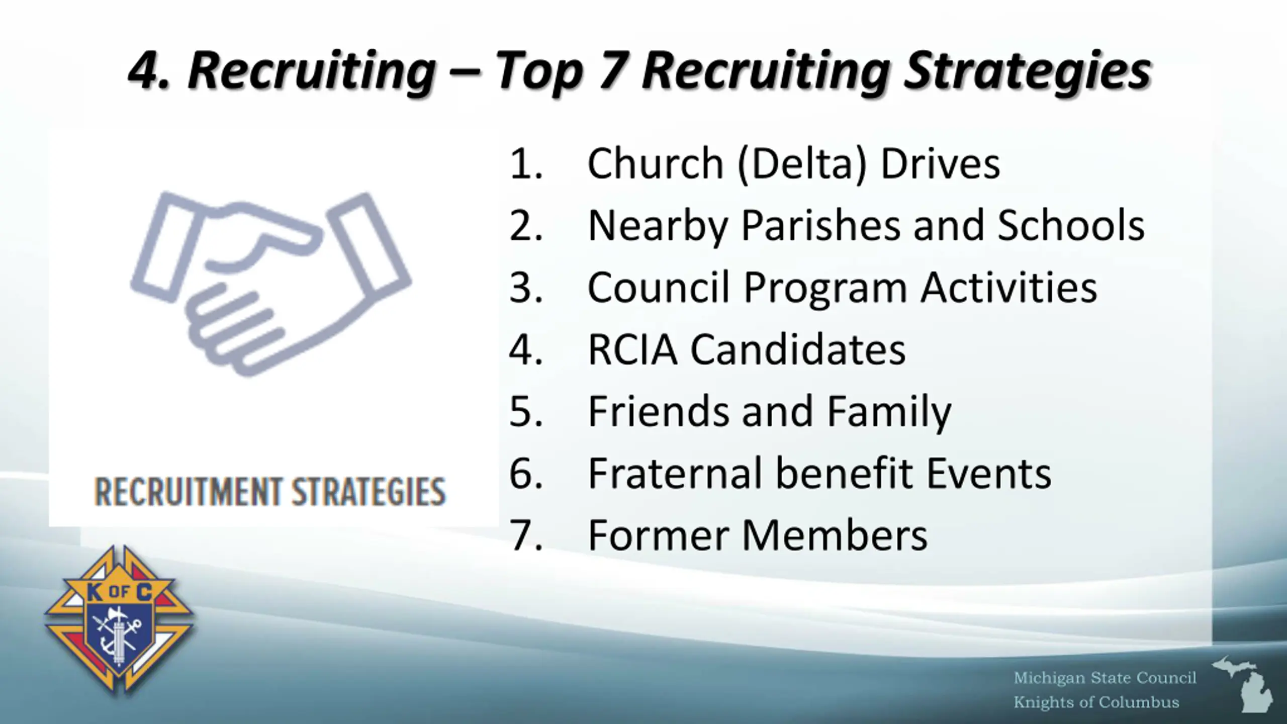 1.2 Why do we recruit? Remember why we recruit Order - To sustain and grow the Order Church To strengthen our Parishes Community To practice charity where needed Members To be better Catholics, husbands & men Family To strengthen Catholic Families Vivat Jesus To Live Jesus through our actions Michigan State Council Knights of Columbus