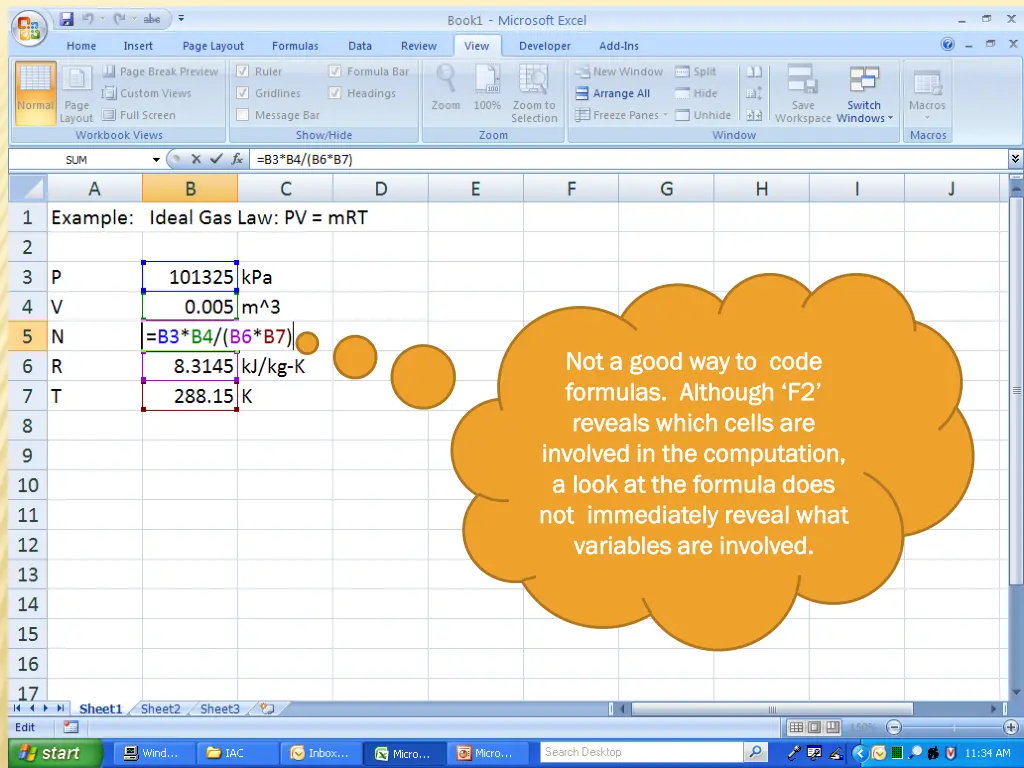 Named Ranges Instead, use names for the variables Choose names that are longer than two characters so Excel doesn t confuse them with cell addresses Choose P_1 instead of P1 Or Press instead of P