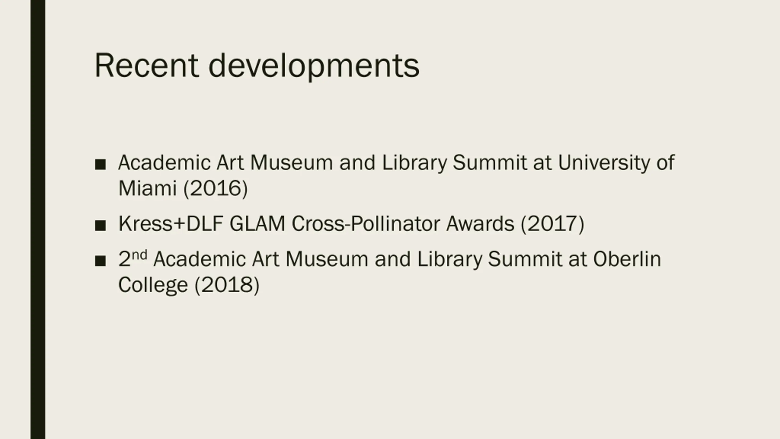 Recent developments Academic Art Museum and Library Summit at University of Miami (2016) Kress+DLF GLAM Cross-Pollinator Awards (2017) 2nd Academic Art Museum and Library Summit at Oberlin College (2018)
