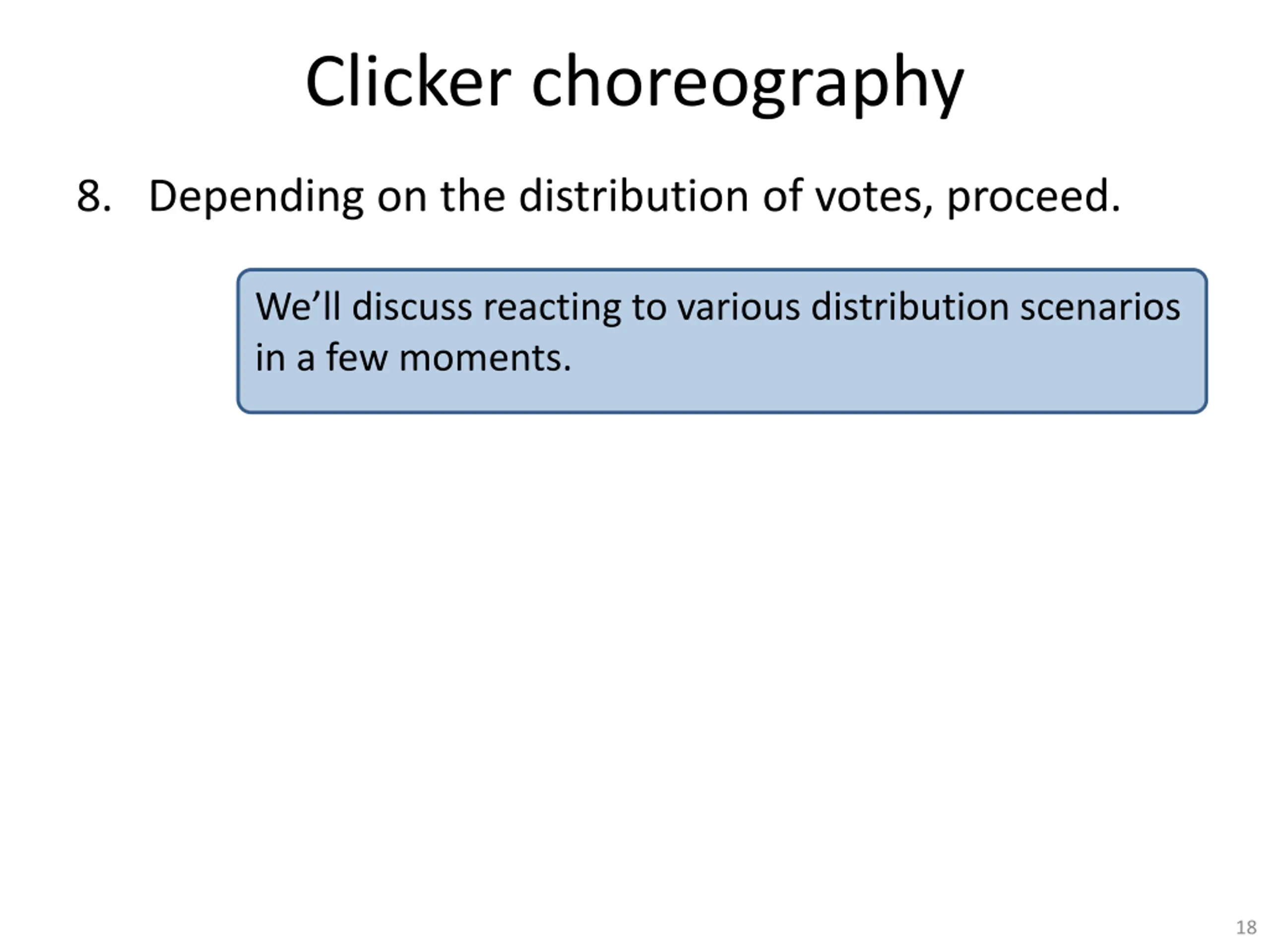 Clicker choreography 8. Depending on the distribution of votes, proceed. We ll discuss reacting to various distribution scenarios in a few moments. 18