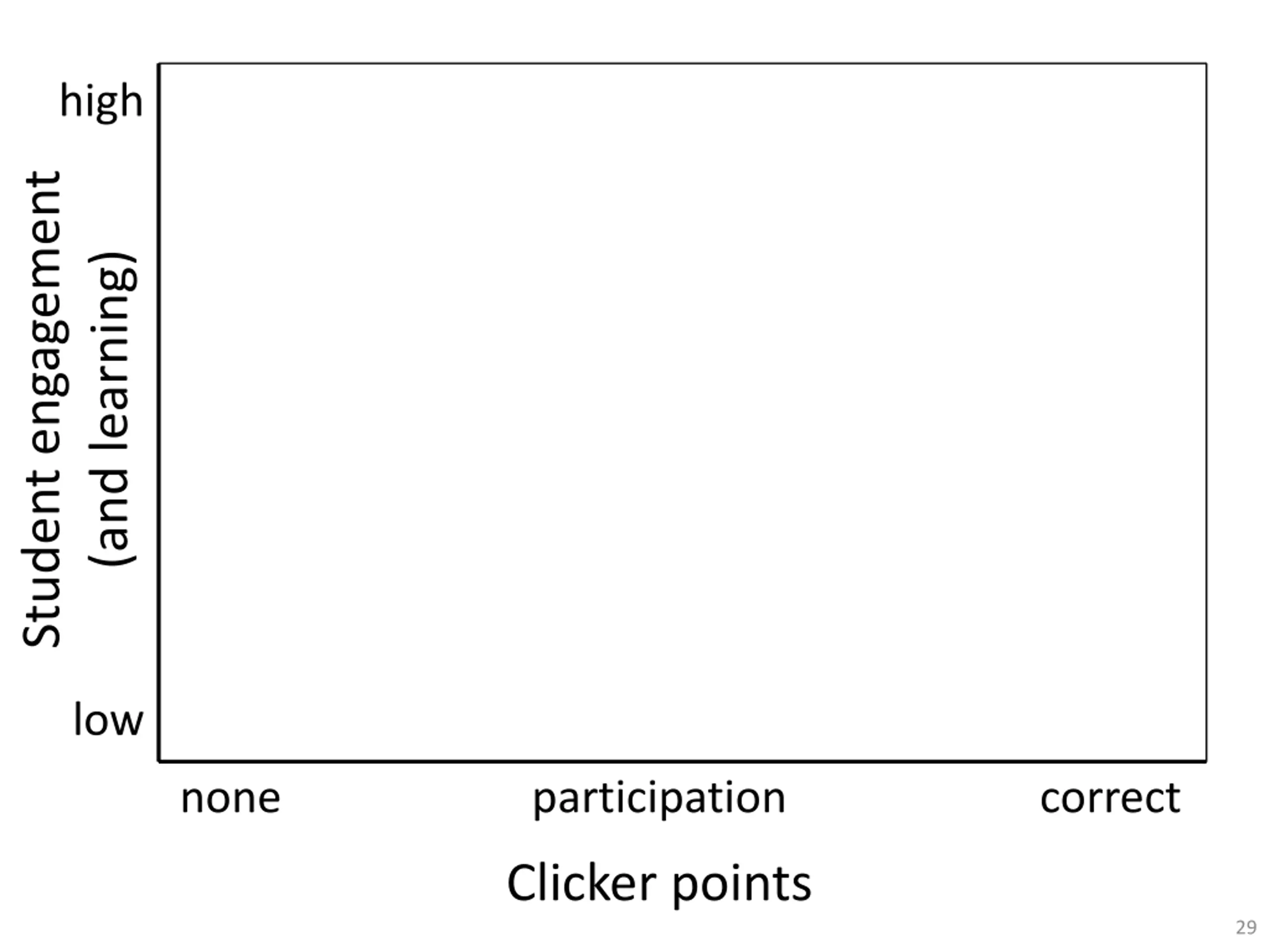 high Student engagement (and learning) low none participation correct Clicker points 29