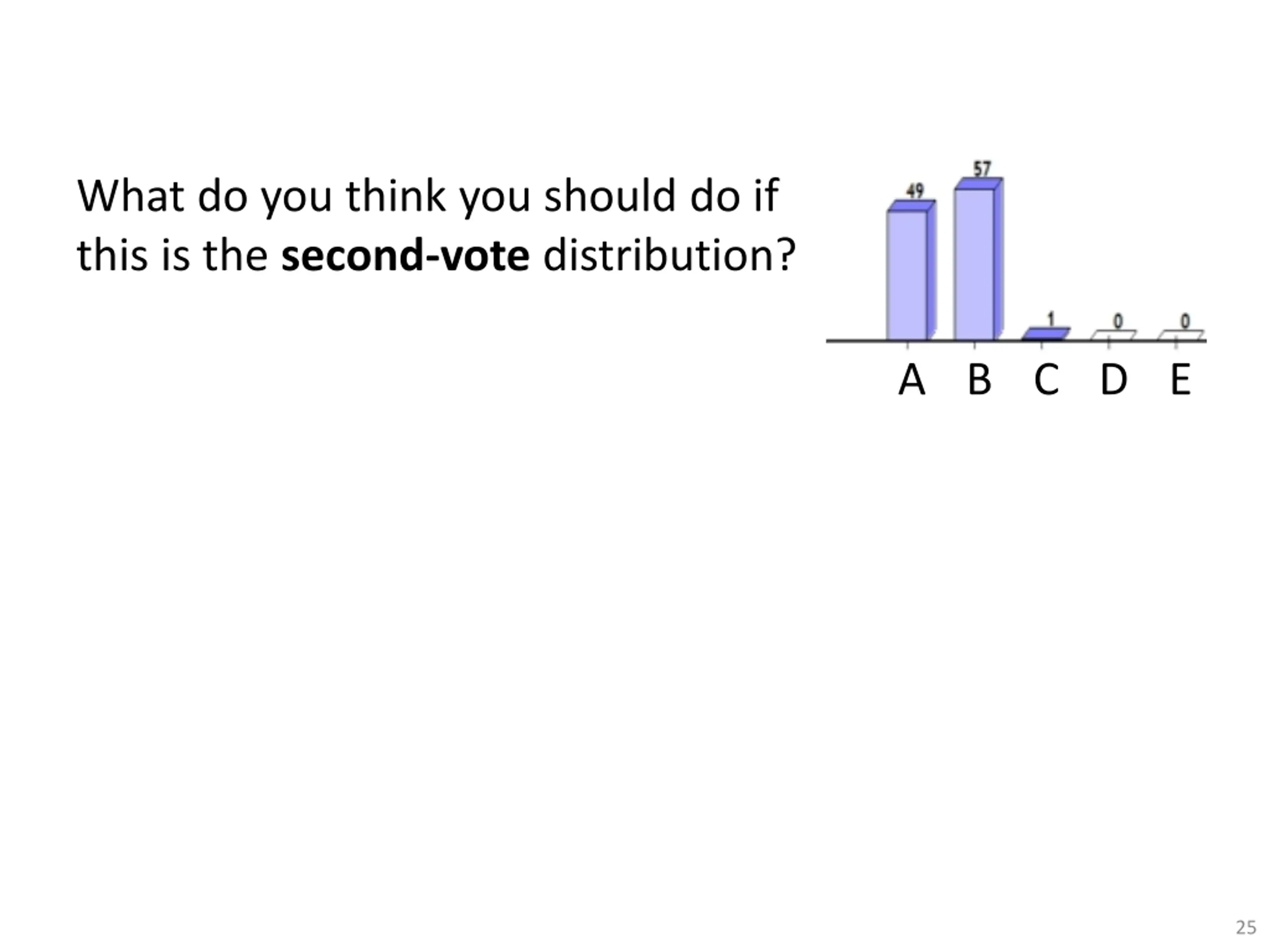 What do you think you should do if this is the second-vote distribution? A B C D E 25