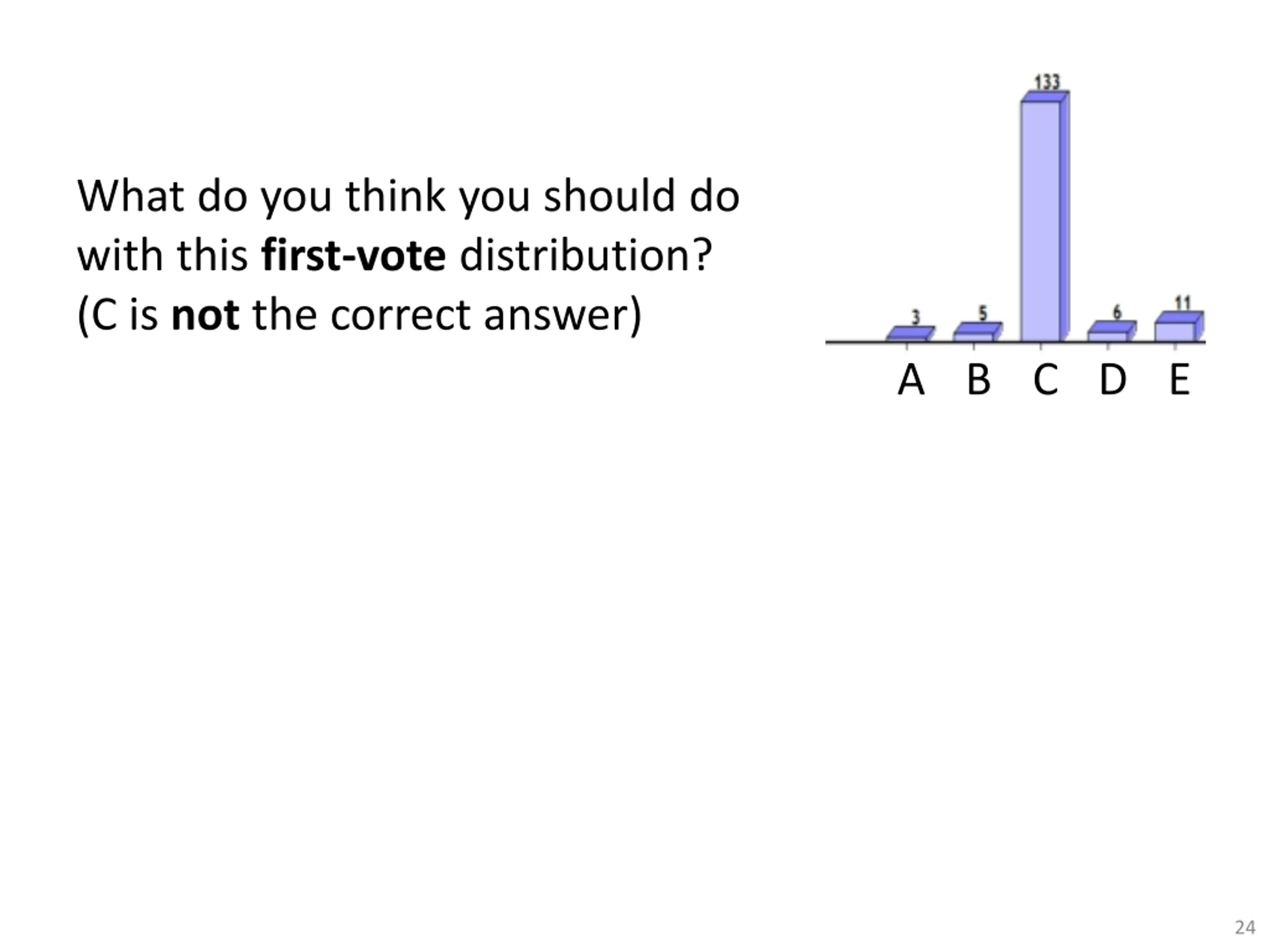 What do you think you should do with this first-vote distribution? (C is not the correct answer) A B C D E 24