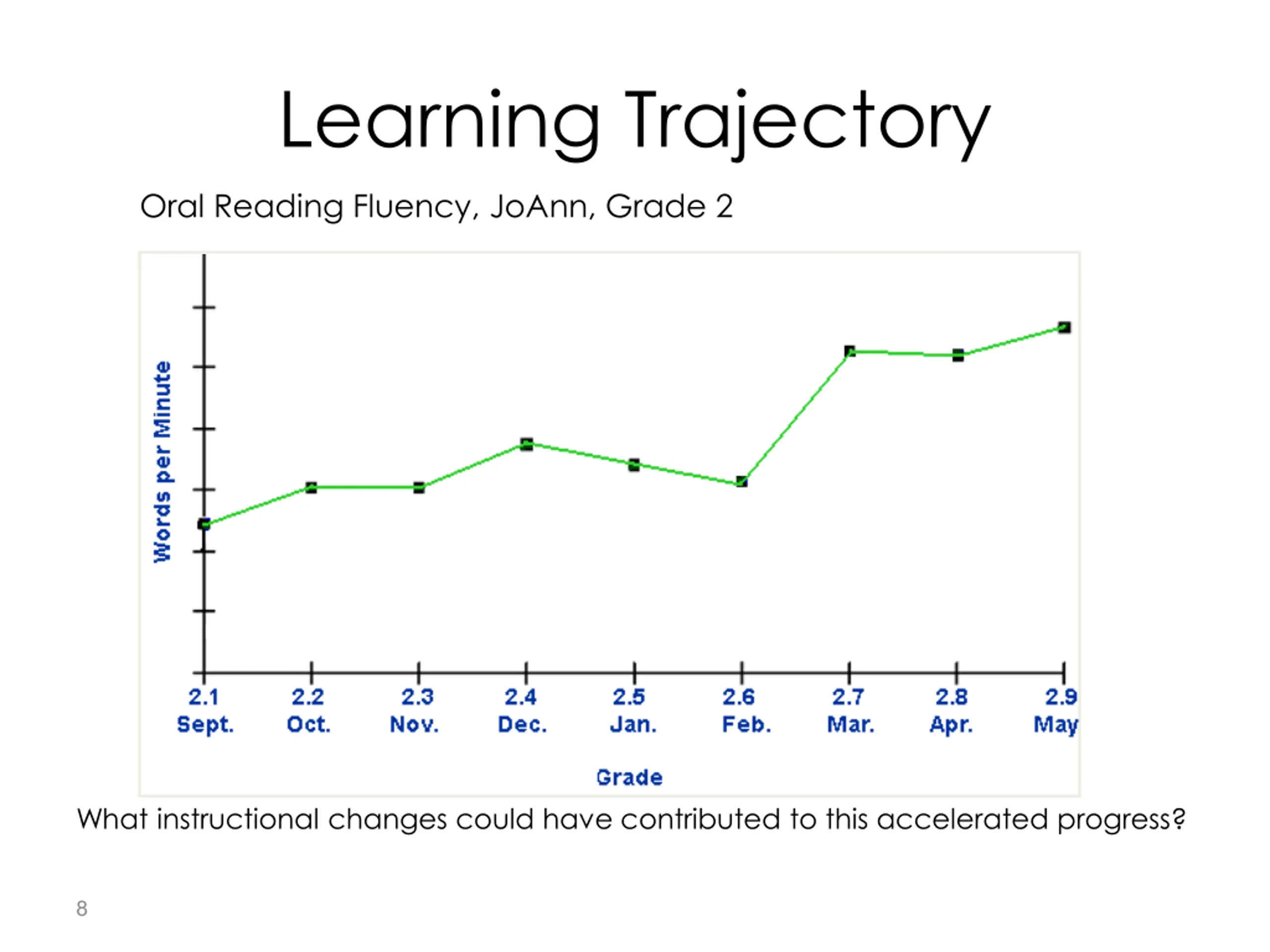Learning Trajectory Oral Reading Fluency, JoAnn, Grade 2 What instructional changes could have contributed to this accelerated progress? 8