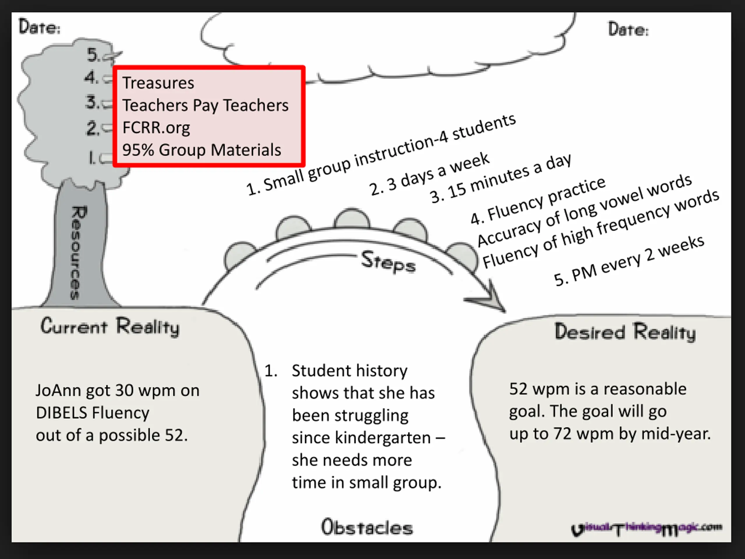 Treasures Teachers Pay Teachers FCRR.org 95% Group Materials 1. Student history shows that she has been struggling since kindergarten she needs more time in small group. 52 wpm is a reasonable goal. The goal will go up to 72 wpm by mid-year. JoAnn got 30 wpm on DIBELS Fluency out of a possible 52.