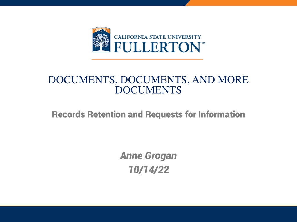 PRESENTATION TITLE DOCUMENTS, DOCUMENTS, AND MORE DOCUMENTS Records Retention and Requests for Information Anne Grogan 10/14/22