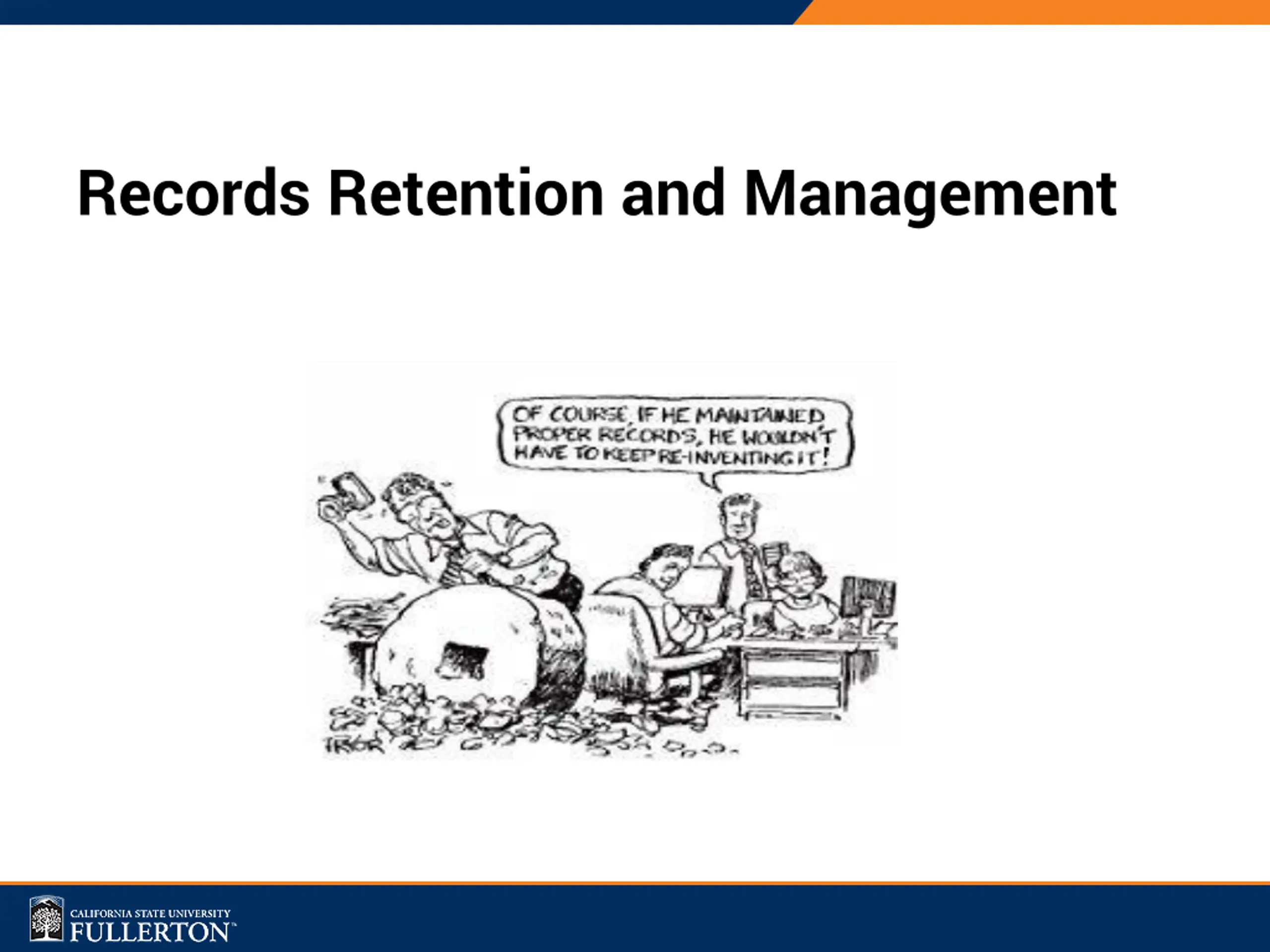 Record retention and management is the maintenance of records for a prescribed period of time, which is called the retention period. CSU Records Retention Schedule Lists and governs the retention period of records that are common across the CSU.