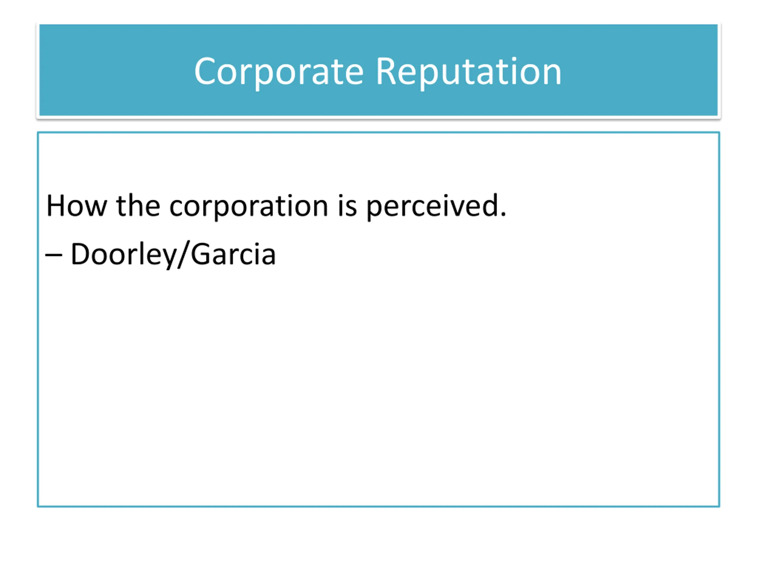 Corporate Reputation How the corporation is perceived. Doorley/Garcia