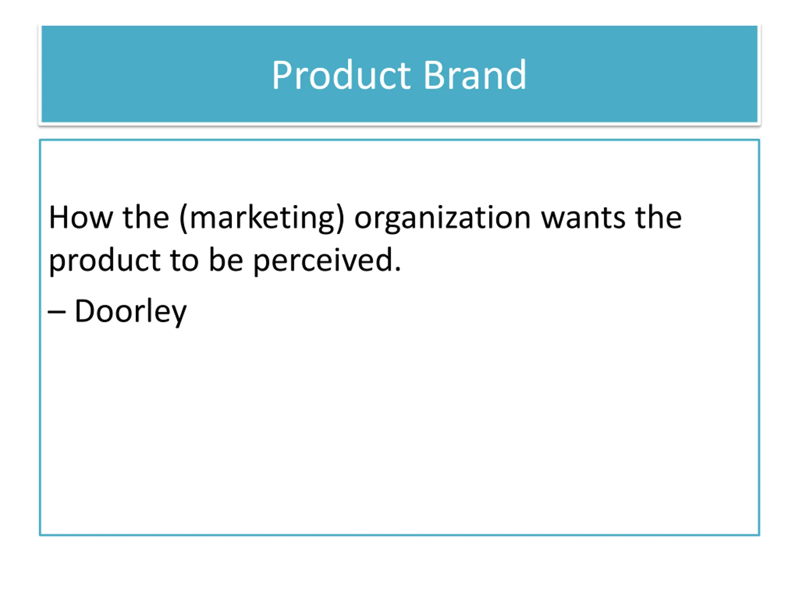 Product Brand How the (marketing) organization wants the product to be perceived. Doorley