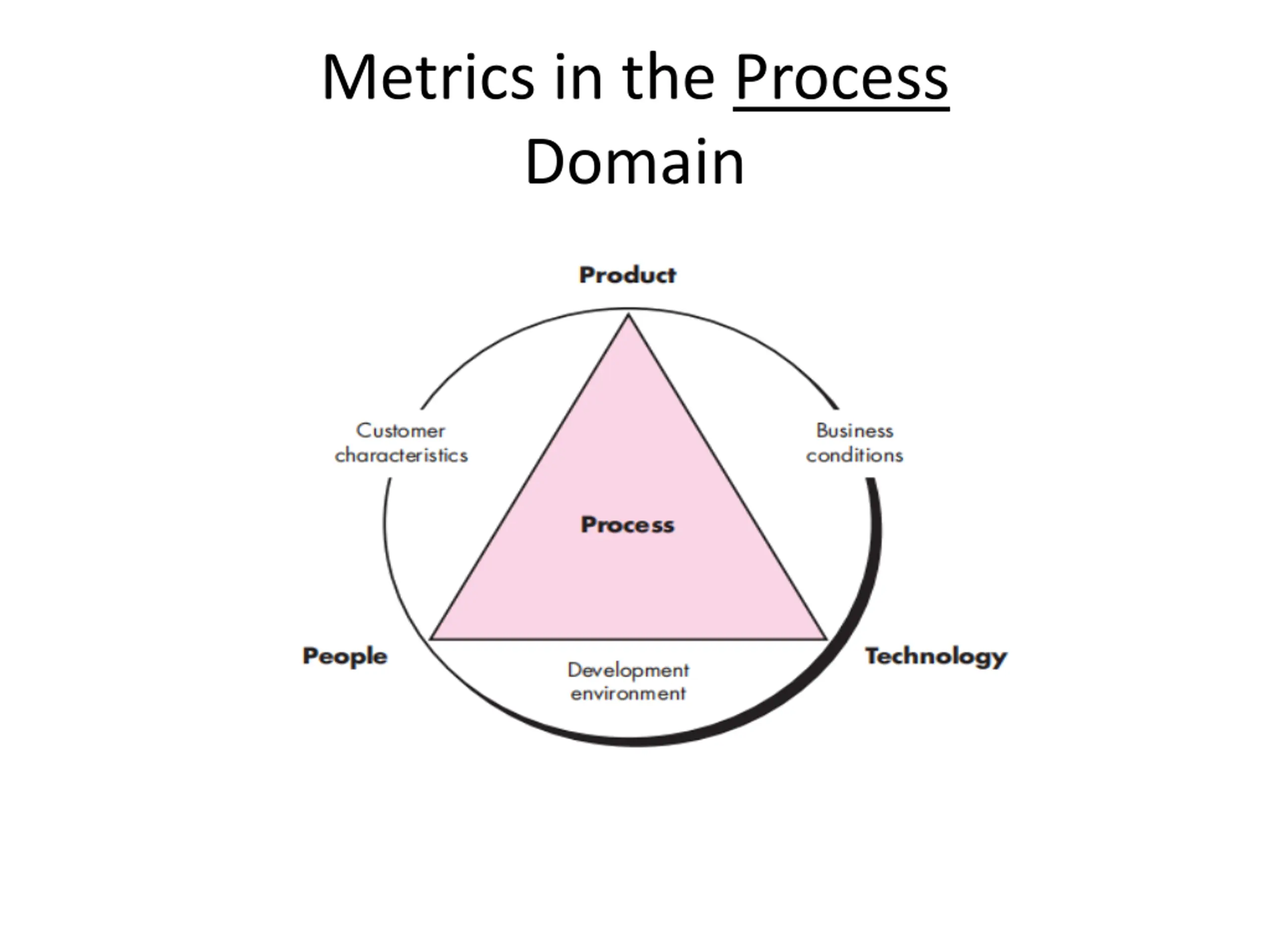 Metrics in the Process Domain Process metrics are collected across all projects and over long periods of time They are used for making strategic decisions The intent is to provide a set of process indicators that lead to long- term software process improvement The only way to know how/where to improve any process is to Measure specific attributes of the process Develop a set of meaningful metrics based on these attributes Use the metrics to provide indicators that will lead to a strategy for improvement 29