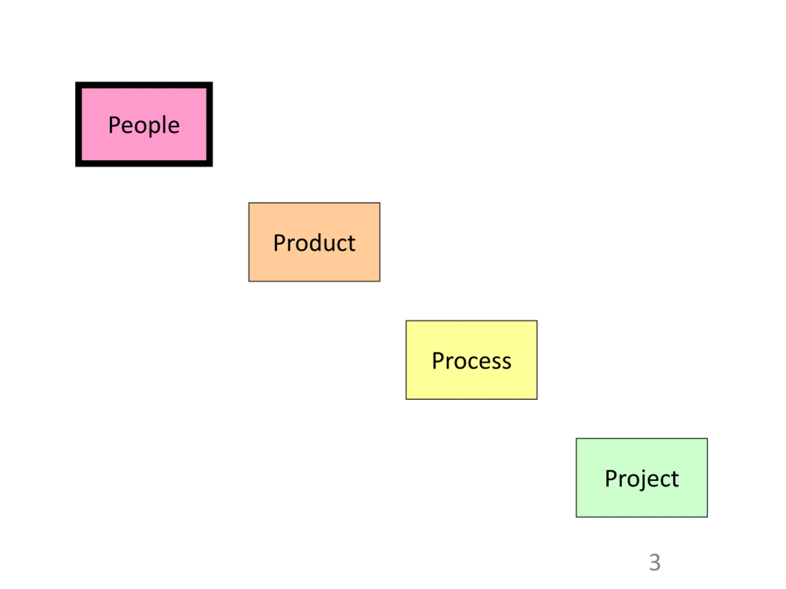 The Management Spectrum Effective software project management focuses on these items (in this order) The people Deals with the cultivation of motivated, highly skilled people Consists of the stakeholders, the team leaders, and the software team The product Product objectives and scope should be established before a project can be planned The process The software process provides the framework from which a comprehensive plan for software development can be established The project Planning and controlling a software project is done for one primary reason it is the only known way to manage complexity In a 1998 survey, 26% of software projects failed outright, 46% experienced cost and schedule overruns 2