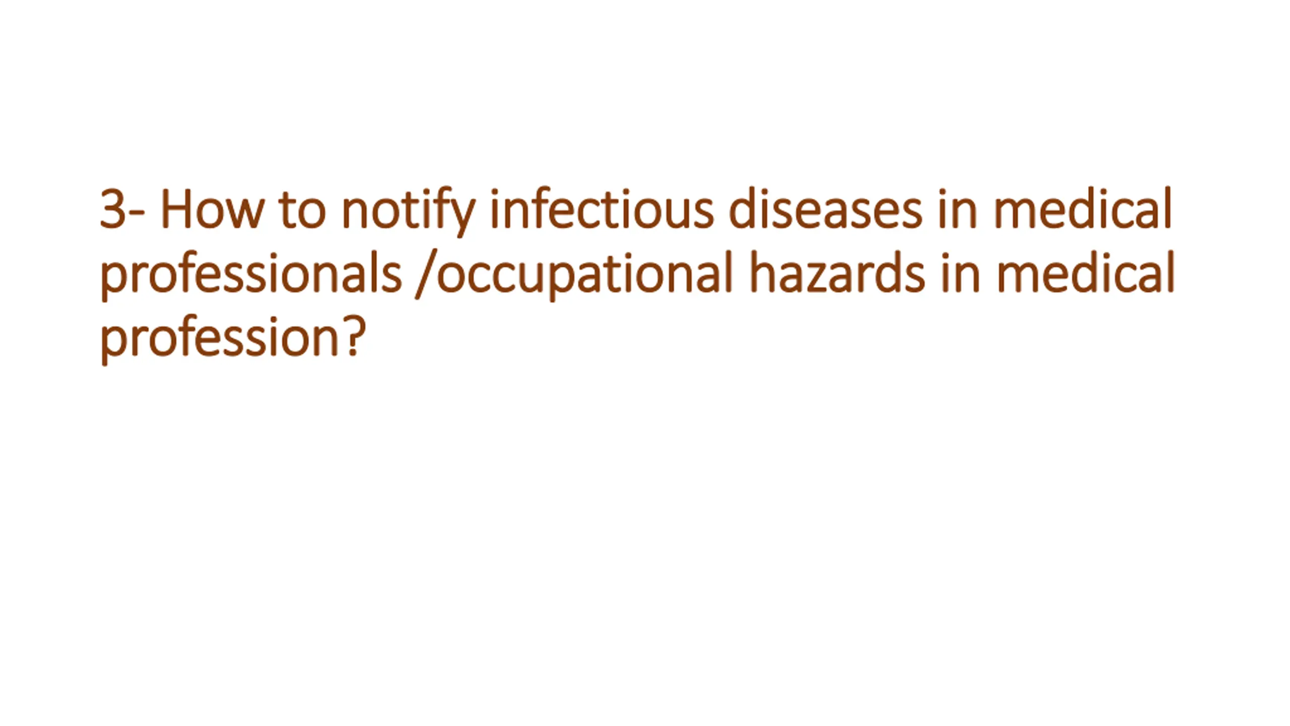 3 3- - How to notify infectious diseases in medical How to notify infectious diseases in medical professionals /occupational hazards in medical professionals /occupational hazards in medical profession? profession?