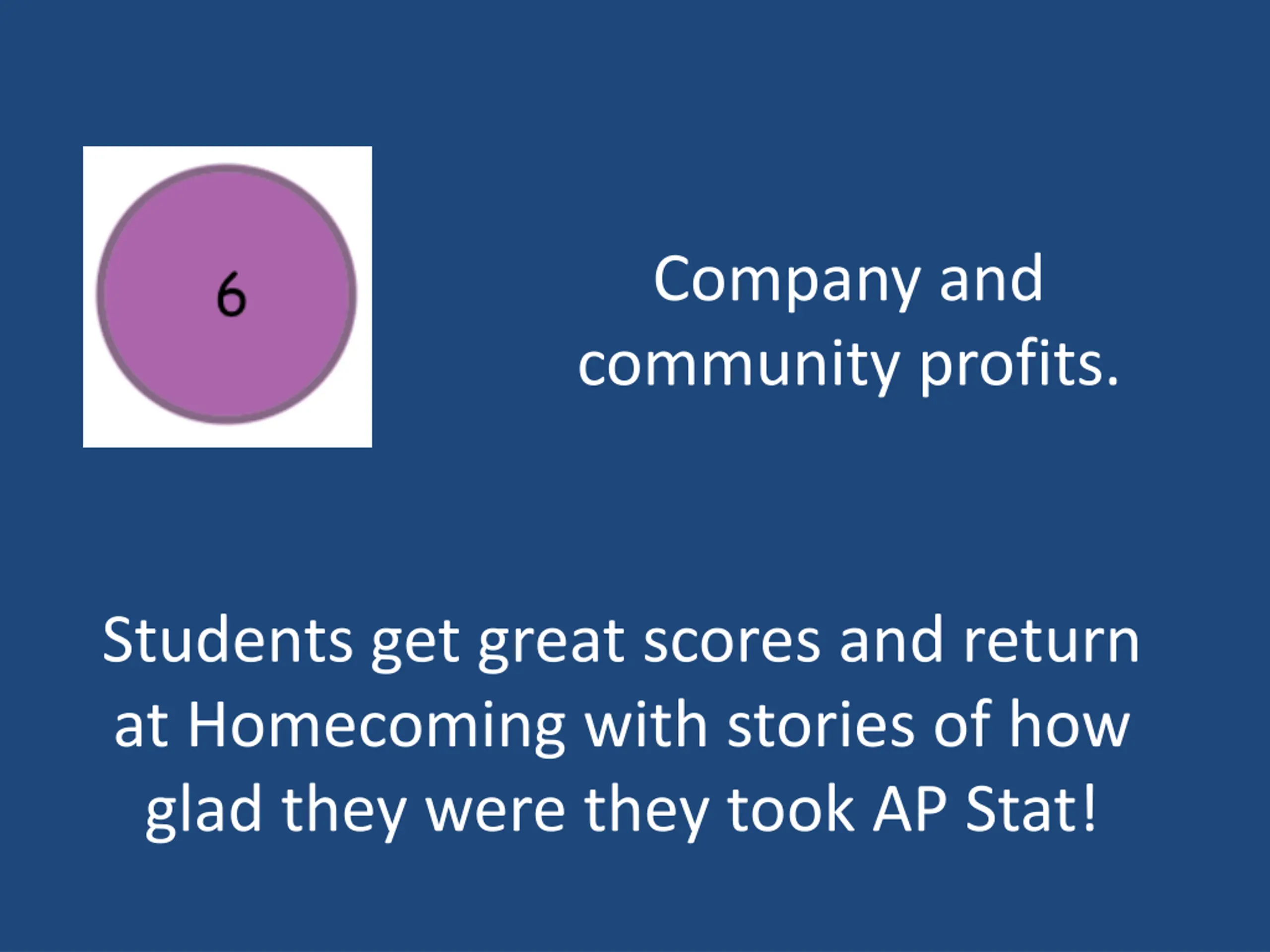 Company and community profits. Students get great scores and return at Homecoming with stories of how glad they were they took AP Stat!