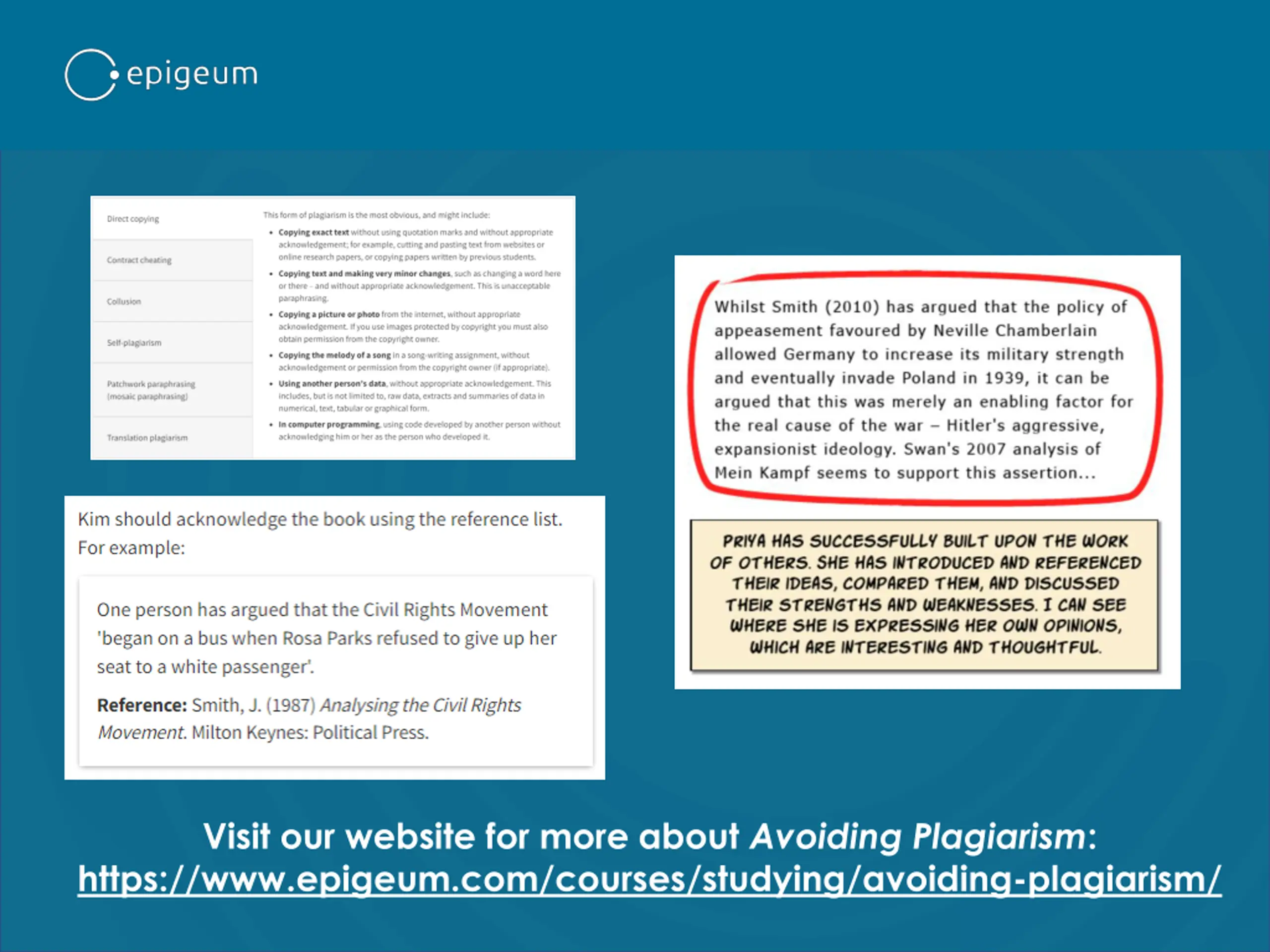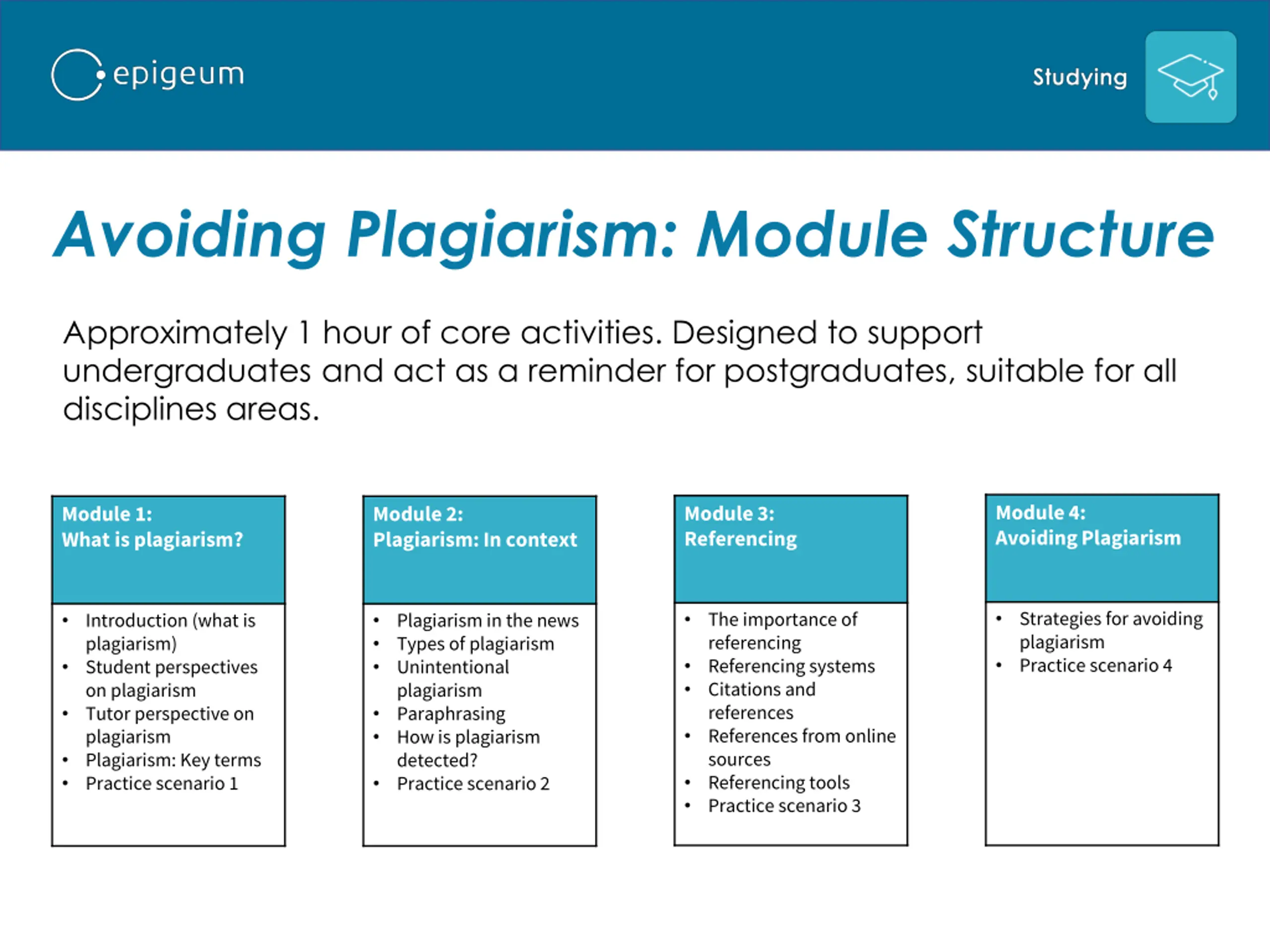 Visit our website for more about Avoiding Plagiarism: https://www.epigeum.com/courses/studying/avoiding-plagiarism/