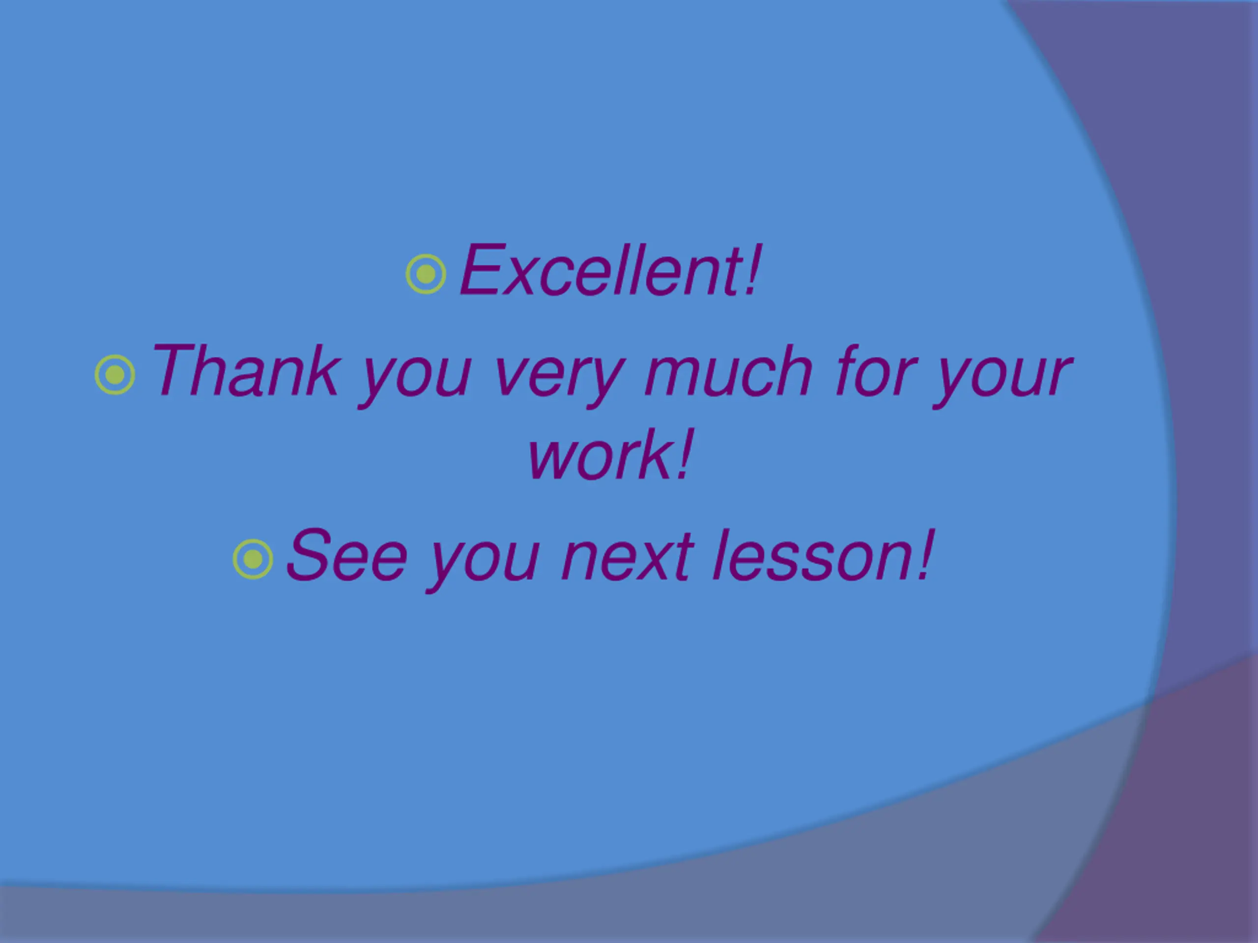 Excellent! Thank you very much for your work! See you next lesson!