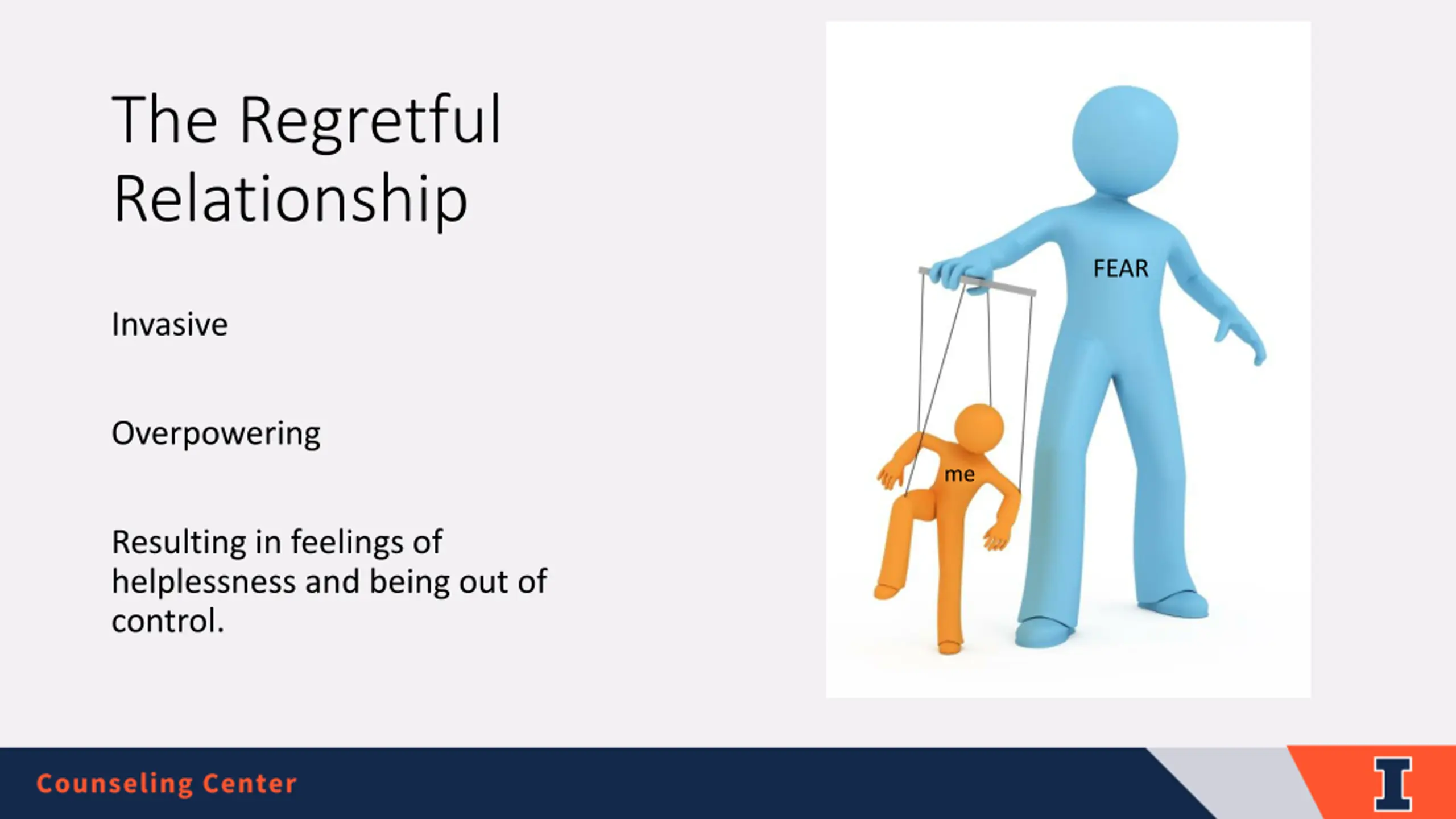 The Regretful Relationship FEAR Invasive Overpowering me Resulting in feelings of helplessness and being out of control.