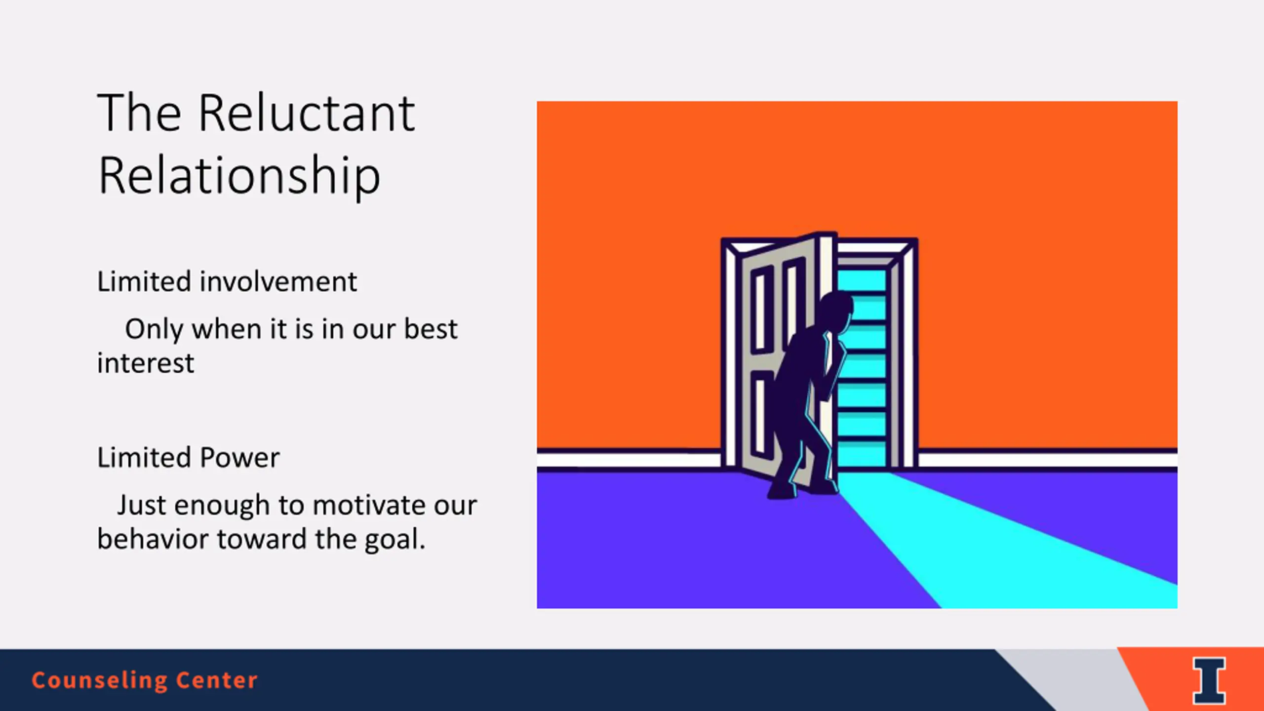 The Reluctant Relationship Limited involvement Only when it is in our best interest Limited Power Just enough to motivate our behavior toward the goal.