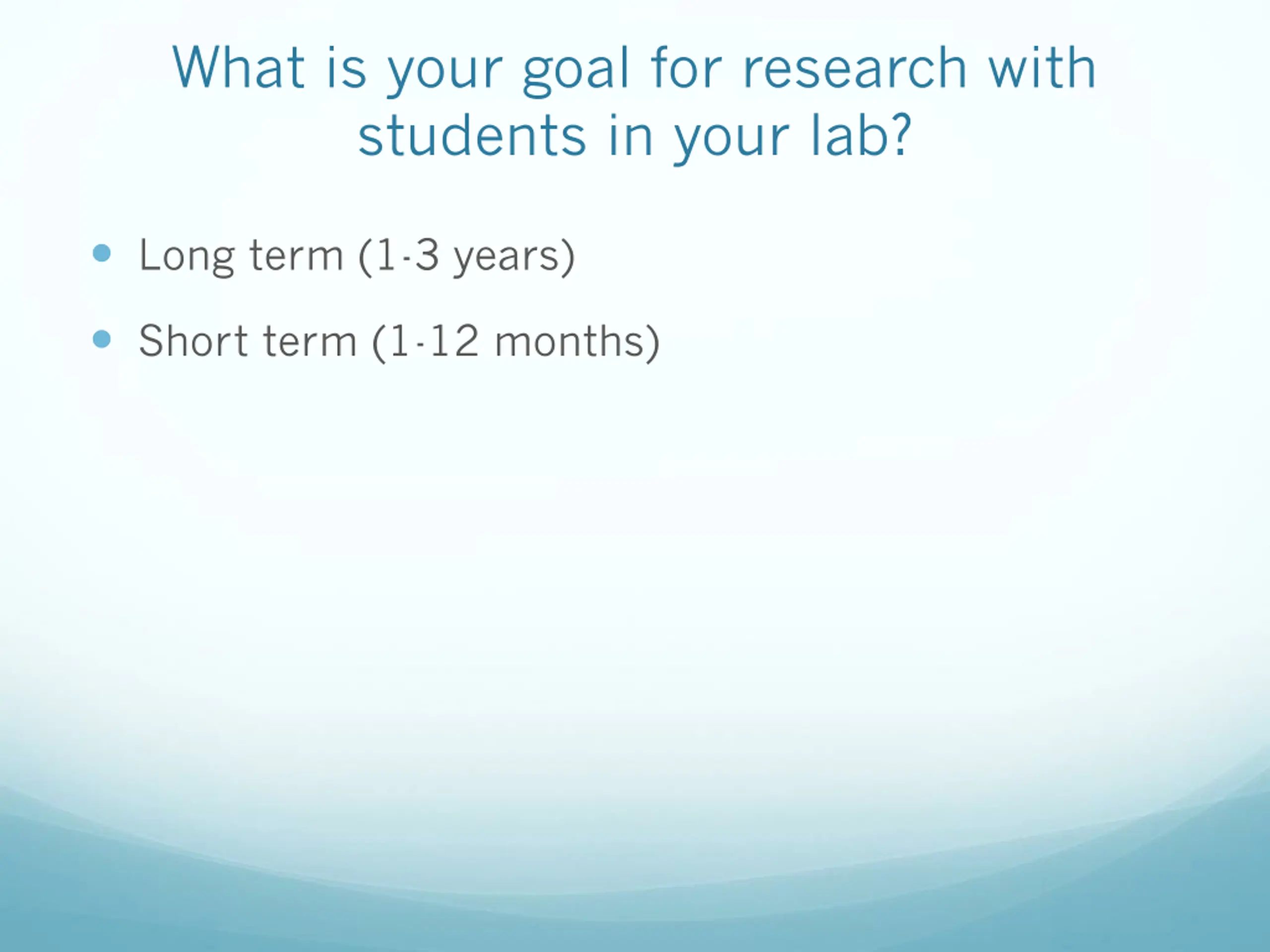 What is your goal for research with students in your lab? Long term (1-3 years) Short term (1-12 months)