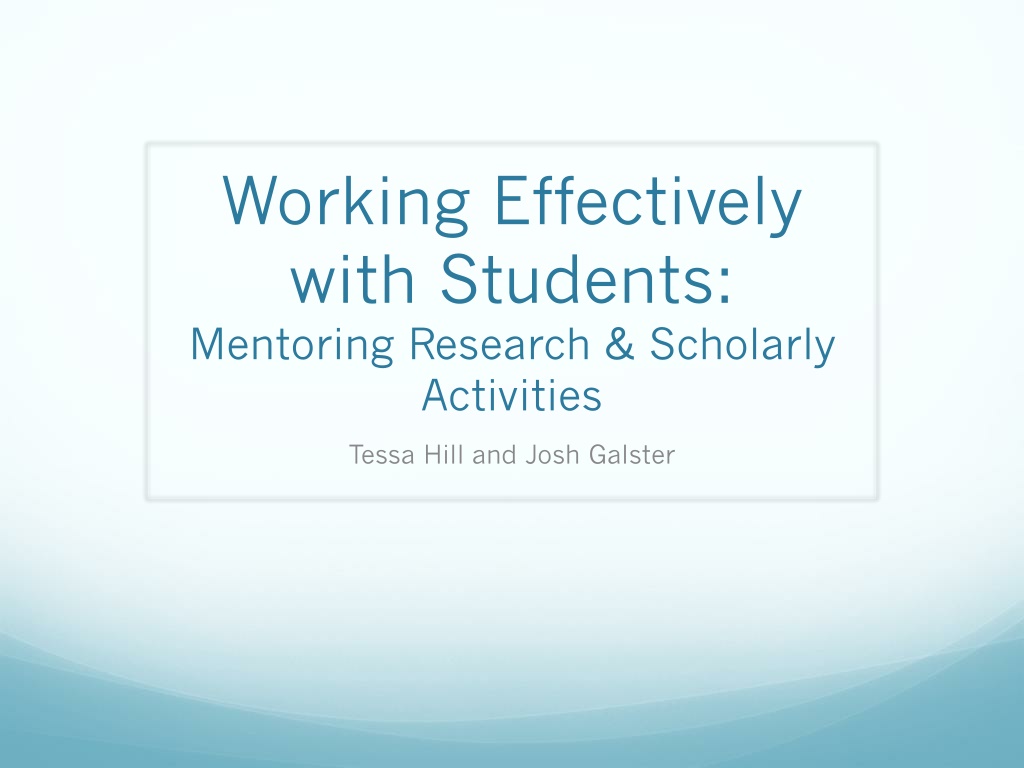Working Effectively with Students: Mentoring Research & Scholarly Activities Tessa Hill and Josh Galster