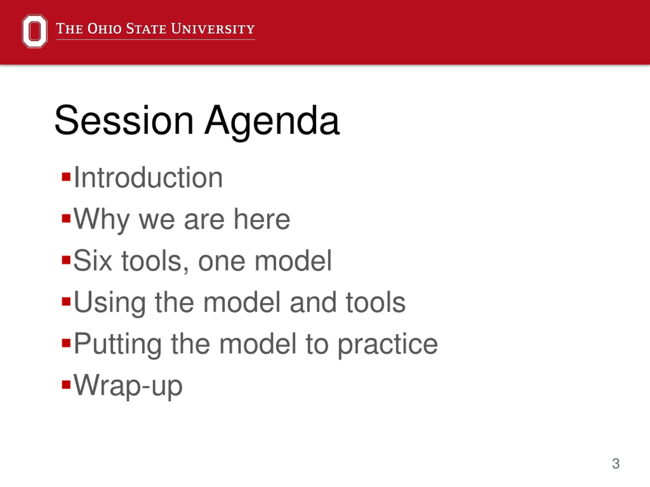 Session Agenda Introduction Why we are here Six tools, one model Using the model and tools Putting the model to practice Wrap-up 3