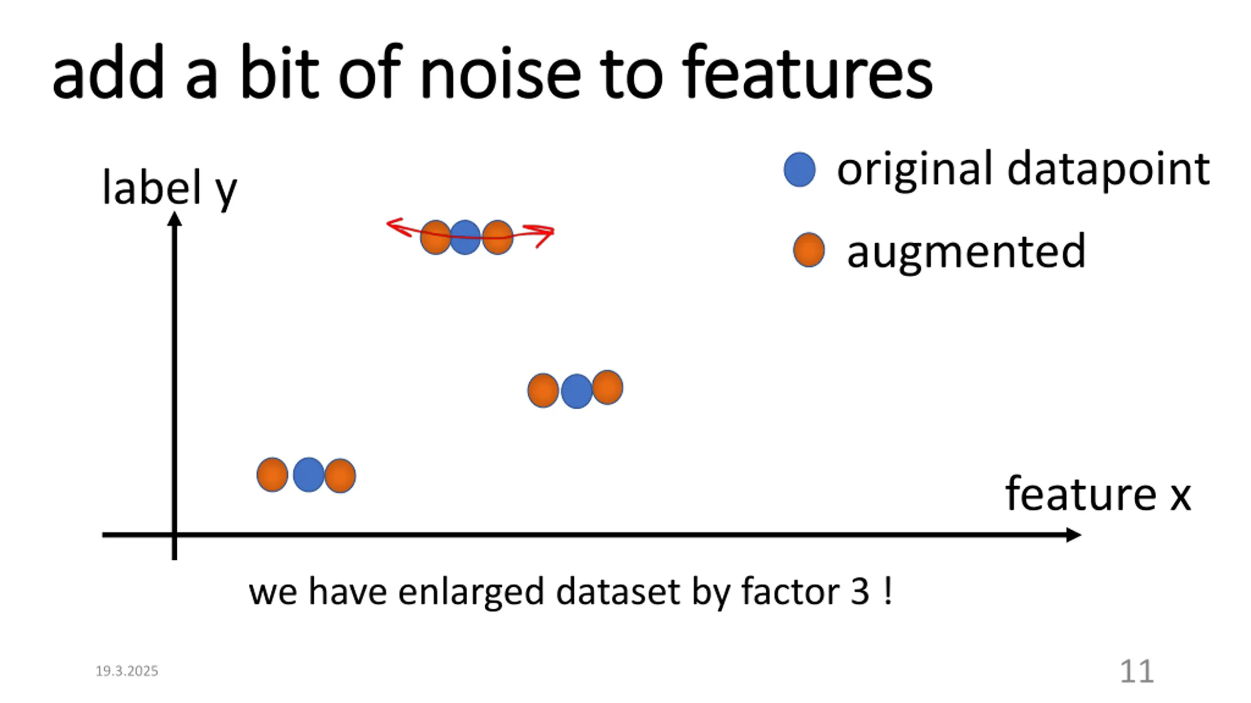 add a bit of noise to features add a bit of noise to features original datapoint label y augmented feature x we have enlarged dataset by factor 3 ! 11 19.3.2025