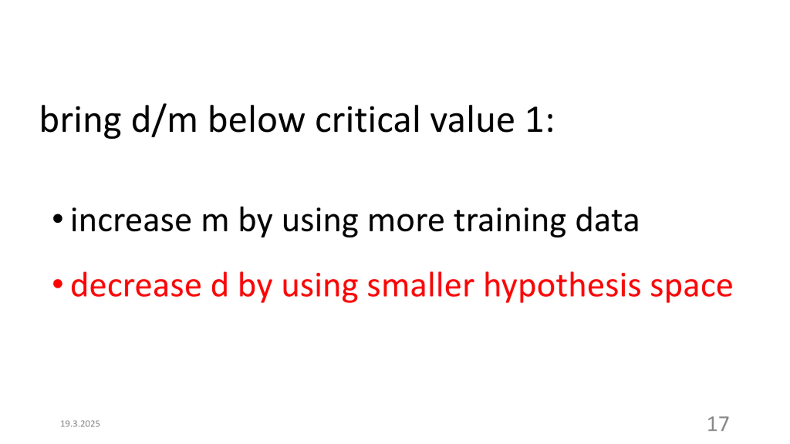 bring d/m below critical value 1: increase m by using more training data decrease d by using smaller hypothesis space 10 19.3.2025