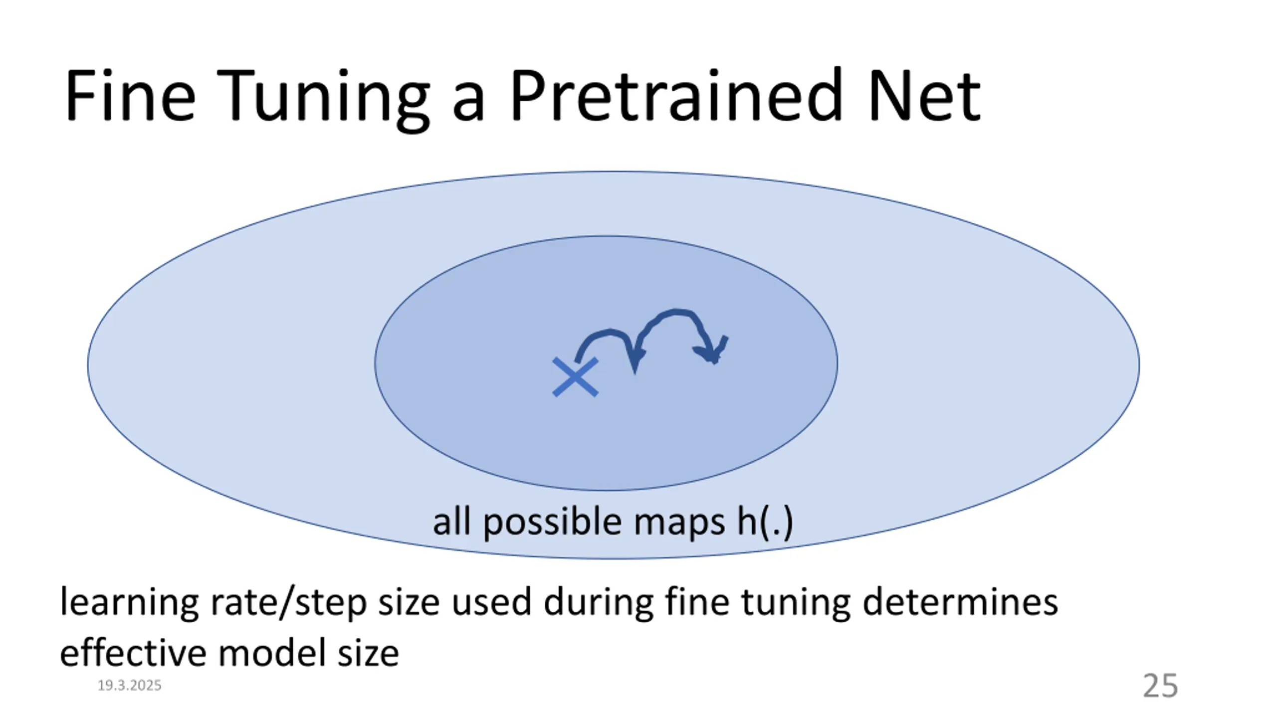 Fine Tuning a Pretrained Net all possible maps h(.) learning rate/step size used during fine tuning determines effective model size 25 19.3.2025