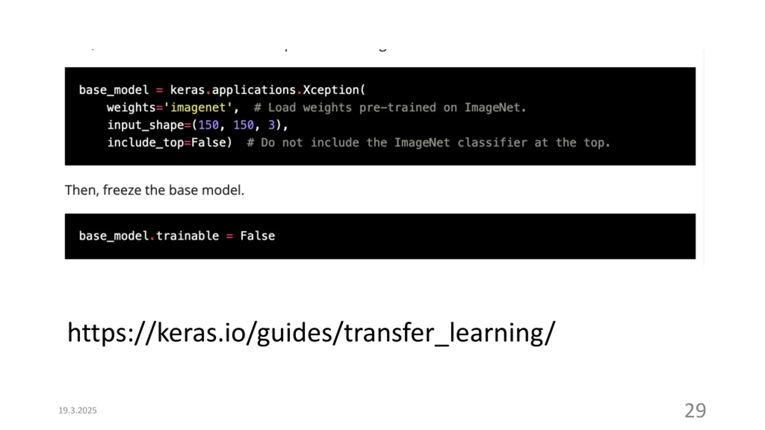 https://keras.io/guides/transfer_learning/ 29 19.3.2025
