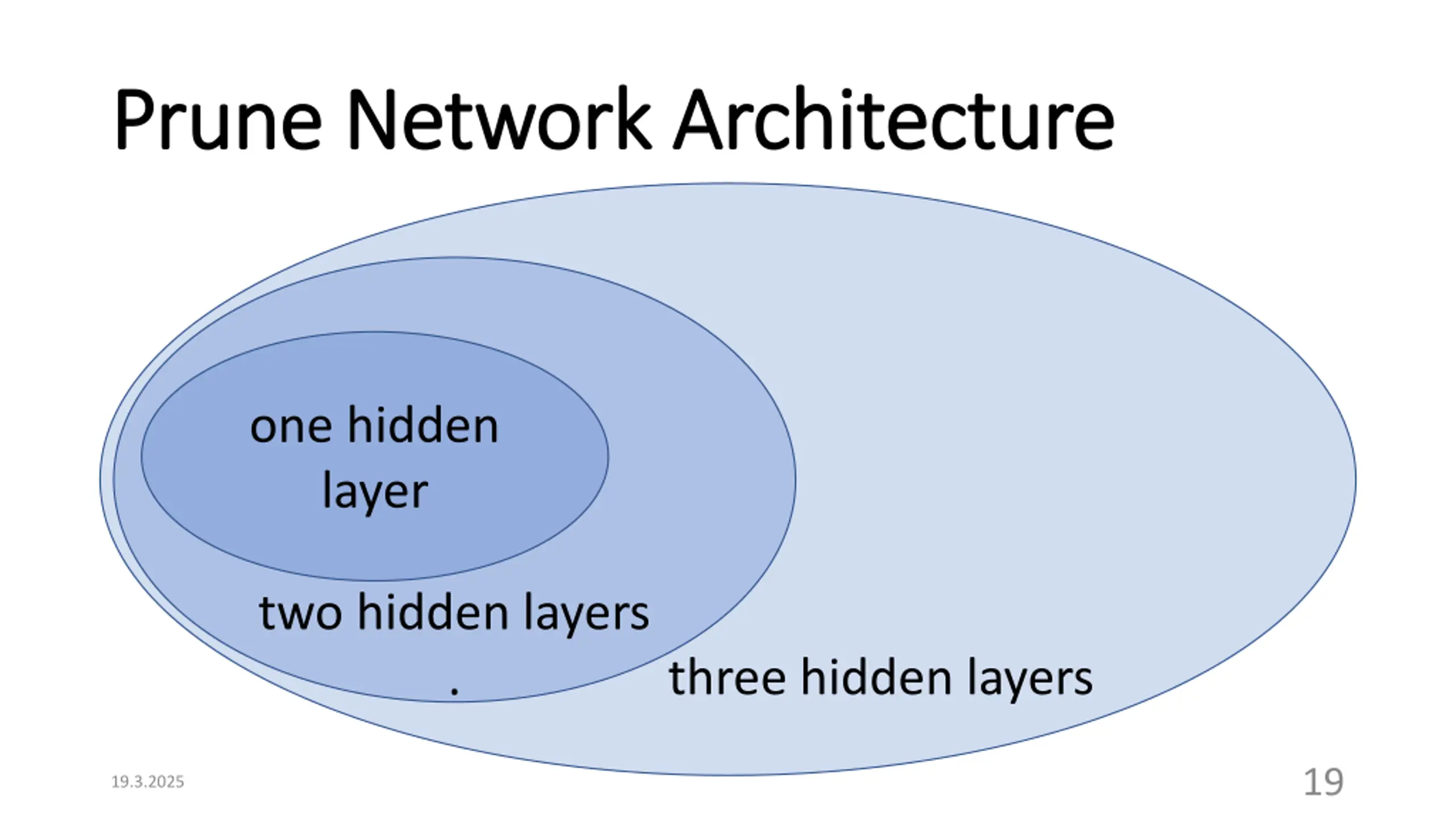 Prune Network Architecture Prune Network Architecture one hidden layer two hidden layers . three hidden layers 19 19.3.2025