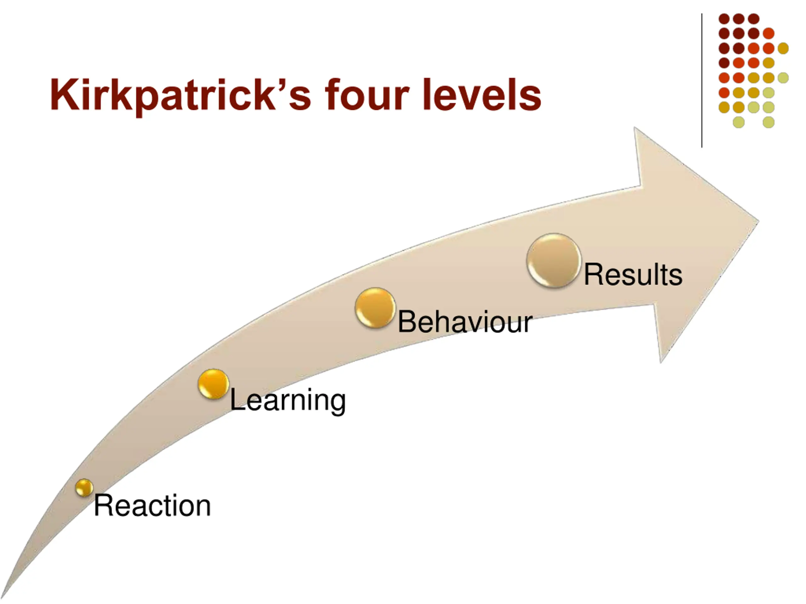 Kirkpatricks four levels Results Behaviour Learning Reaction